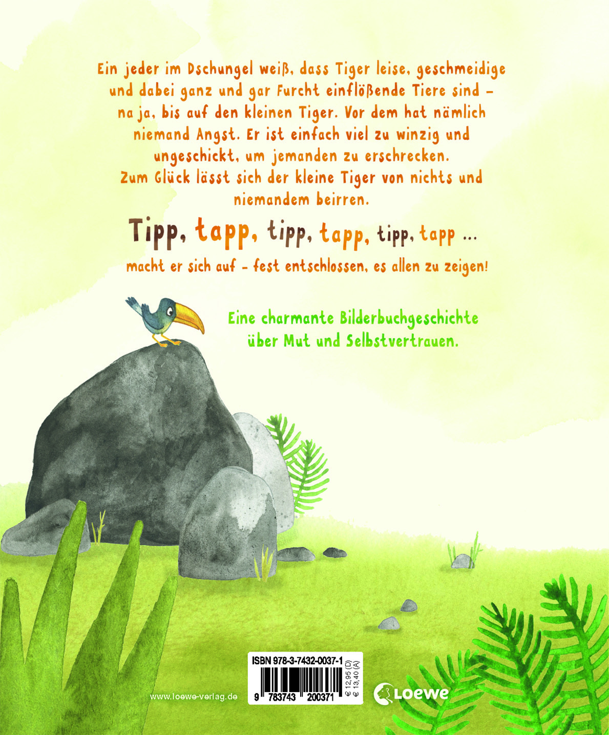 Zum Glück lässt sich der kleine Tiger von nichts und niemandem beirren. Tipp, tapp, tipp, tapp, tipp, tapp ... macht er sich auf - fest entschlossen, es allen zu zeigen!