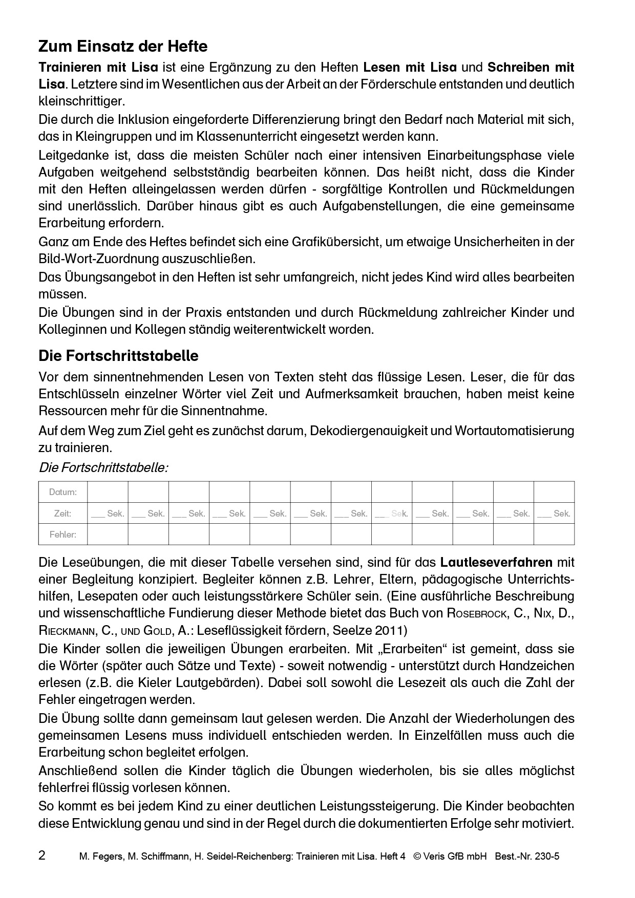 Die durch die Inklusion eingeforderte Differenzierung bringt den Bedarf nach Material mit sich, das in Kleingruppen und im Klassenunterricht eingesetzt werden kann.Leitgedanke ist, dass die meisten Schüler*innen nach einer intensiven Einarbeitungsphase viele Aufgaben weitgehend selbstständig bearbeiten können.Das heißt nicht, dass die Kinder mit den Heften alleingelassen werden dürfen - sorgfältige Kontrollen und Rückmeldungen sind unerlässlich. Es gibt auch Aufgabenstellungen, die eine gemeinsame Erarbeitung erfordern.Die Hefte in Grundschrift mit vielen farbigen Grafiken sind in der Praxis entstanden und durch Rückmeldung zahlreicher Kinder und Kolleginnen und Kollegen ständig weiterentwickelt worden.Das Übungsangebot ist sehr umfangreich, der Einsatz sollte individuell entschieden werden. Nicht jedes Kind wird alles bearbeiten müssen.Viele Aufgaben (Texte und Sätze) sind in silbenweiser Einfärbung gestaltet.Die Schwerpunkte der Übungen in Heft 4: j, v, ß, ä, ü, ö, y, x und Qu/quZusätzlich werden Übungen zu Vorsilben und zum ck angeboten.Das Heft beinhaltet unter anderem folgende wiederkehrende Übungen:- Punktschrift nachspuren- Bild-Wort-Zuordnungen- Bild-Satz-Zuordnungen- Silbenrätsel, Bilderrätsel- Übungen mit Silbenbögen- Übungen mit Silben- Sätze bauen- Sätze bilden, Sätze schreiben- Fragen beantworten- Leseübungen mit Fortschrittstabelle- der, die, das - ein, eine- Groß oder klein?- Vorsilben verändern Wörter- Nomen, Verben und Adjektive (inklusive Steigerungen)- Einzahl und Mehrzahl- VergangenheitVor dem sinnentnehmenden Lesen von Texten steht das flüssige Lesen.Leser*innen, die für das Entschlüsseln einzelner Wörter viel Zeit und Aufmerksamkeit brauchen, haben meist keine Ressourcen mehr für die Sinnentnahme.Die Leseübungen mit Fortschrittstabelle sind für das Lautleseverfahren vorgesehen.Am Ende des Heftes befindet sich eine Grafikübersicht, um etwaige Unsicherheiten in der Bild-Wort-Zuordnung auszuschließen.Trainieren mit Lisa ergänzt die Hefte Lesen mit Lisa und Schreiben mit Lisa.Lesen mit Lisa und Schreiben mit Lisa sind deutlich kleinschrittiger.