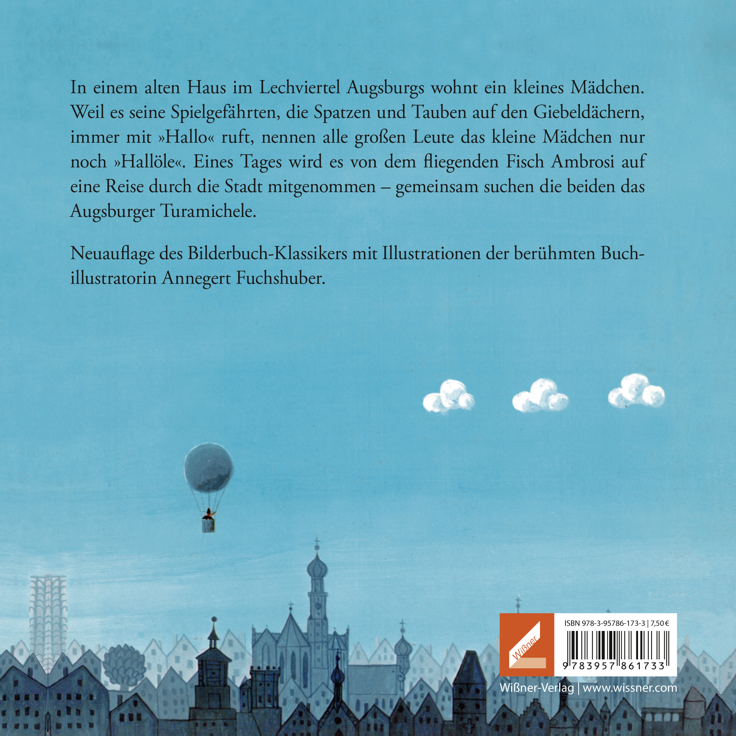 In einem alten Haus im Lechviertel Augsburgs wohnt ein kleines Mädchen. Weil es seine Spielgefährten, die Spatzen und Tauben auf den Giebeldächern, immer mit "Hallo" ruft, nennen alle großen Leute das kleine Mädchen nur noch "Hallöle". Eines Tages wird es von dem fliegenden Fisch Ambrosi auf eine Reise durch die Stadt mitgenommen - gemeinsam suchen die beiden das Augsburger Turamichele.Neuauflage des Bilderbuch-Klassikers mit Illustrationen der berühmten Buchillustratorin Annegert Fuchshuber.