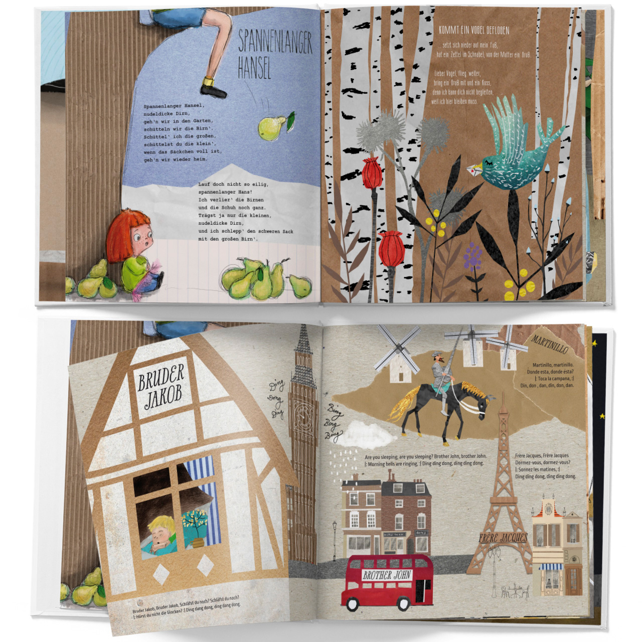 Seid Ihr auch nach der Suche nach einem schönen Liederbuch mit großen Bildern ohne störenden Schnickschnack? Denn mal ehrlich, wen interessieren denn Noten, wenn dafür der ganze Platz für schöne Bilder draufgeht! Will & Rubys erstes Liederbuch vereint deshalb alles, was Kinder besonders lieben: tolle Lieder mit gaaanz großen liebevoll gemalten Bildern. Und für die Großen gibt es zu jedem Lied eine kleine Textstütze – mehr braucht Ihr doch auch gar nicht ;-).