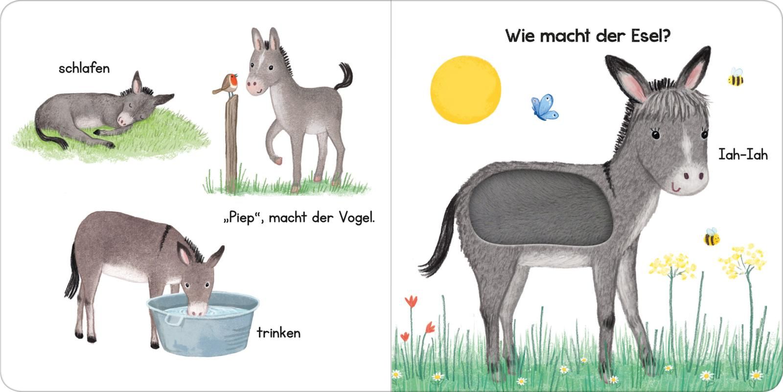 | Schlagworte | Babybuch • Erstes Wörterbuch • erste Wörter • Esel • Fühlbuch • Hase • Kleinkindbuch • Lamm • Lieblingstiere • Schaf • Spracherwerb • Streichelbuch • Streicheltiere • Wortschatzerweiterung |