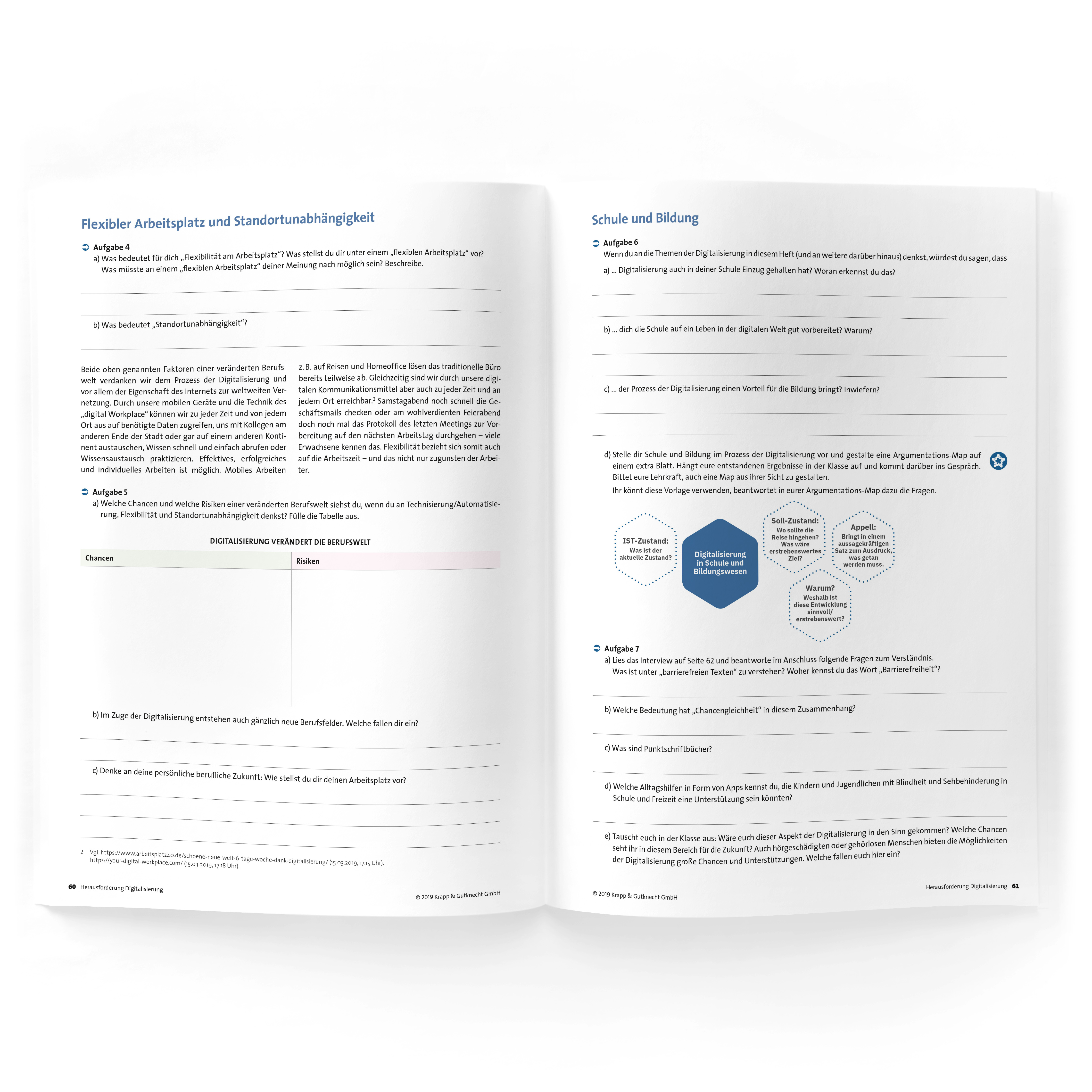 Das Schülerheft führt die Lernenden systematisch an das Thema heran, erarbeitet Grundlagenwissen und verknüpft die Digitalisierung dann mittels zu bearbeitendem Zeitstrahl mit den Themen der Gegenwart und den Herausforderungen der Zukunft. Das Heft begleitet so auf dem Weg zum eigenen Kompendium und der Argumentation unter Verwendung dessen.