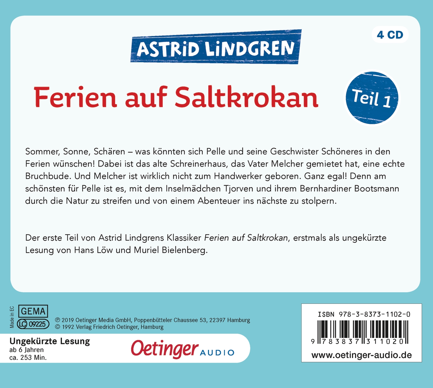 | Schlagworte | Abenteuer • Familie • Ferien • Freundschaft • Glück • Idylle • Insel • Inselabenteuer • Kaninchen • Kinderalltag • Kinderbuch ab 6 • Kinderbücher ab 6 Jahre • Klassiker • Meer • Multibox • Schären • Schulferien • Schweden • Seehund • Skandinavien • Sommer • Sommerferien • Tierliebe • Urlaub |