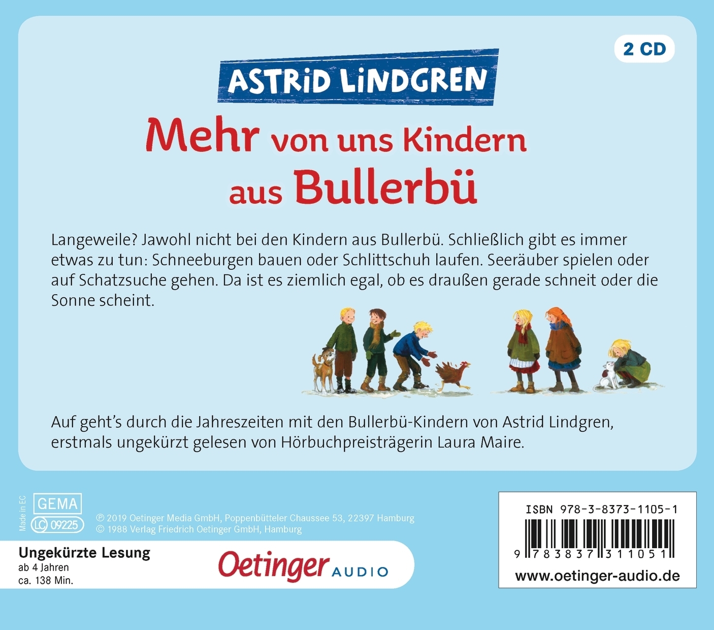 Vom Bullerbü-Gefühl kann man nie genug bekommen. Langeweile? Jawohl nicht bei den Kindern aus Bullerbü. Schließlich gibt es immer etwas zu tun: Schneeburgen bauen oder Schlittschuh laufen. Seeräuber spielen oder auf Schatzsuche gehen. Da ist es ziemlich egal, ob es draußen gerade schneit oder die Sonne scheint. Auf geht's durch die Jahreszeiten mit den Bullerbü-Kindern von Astrid Lindgren, erstmals als ungekürzte Lesung und gelesen von Hörbuchpreisträgerin Laura Maire.