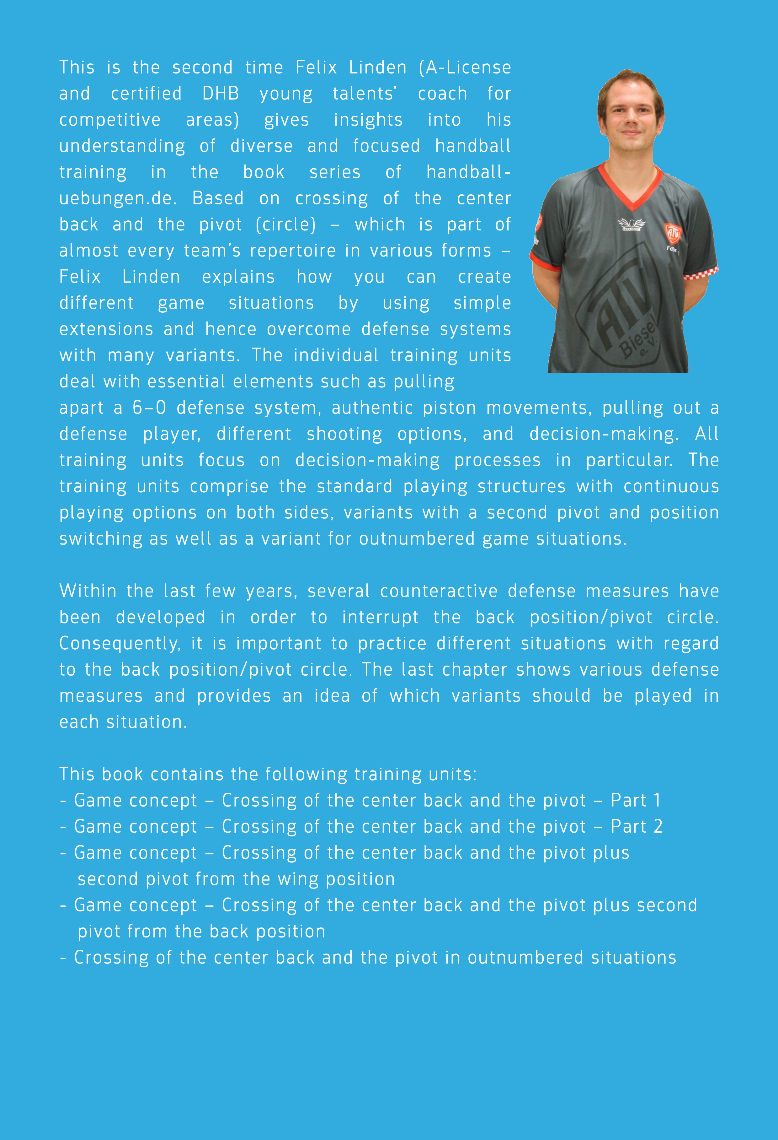 Within the last few years, several counteractive defense measures have been developed in order to interrupt the back position/pivot circle. Consequently, it is important to practice different situations with regard to the back position/pivot circle. The last chapter shows various defense measures and provides an idea of which variants should be played in each situation.