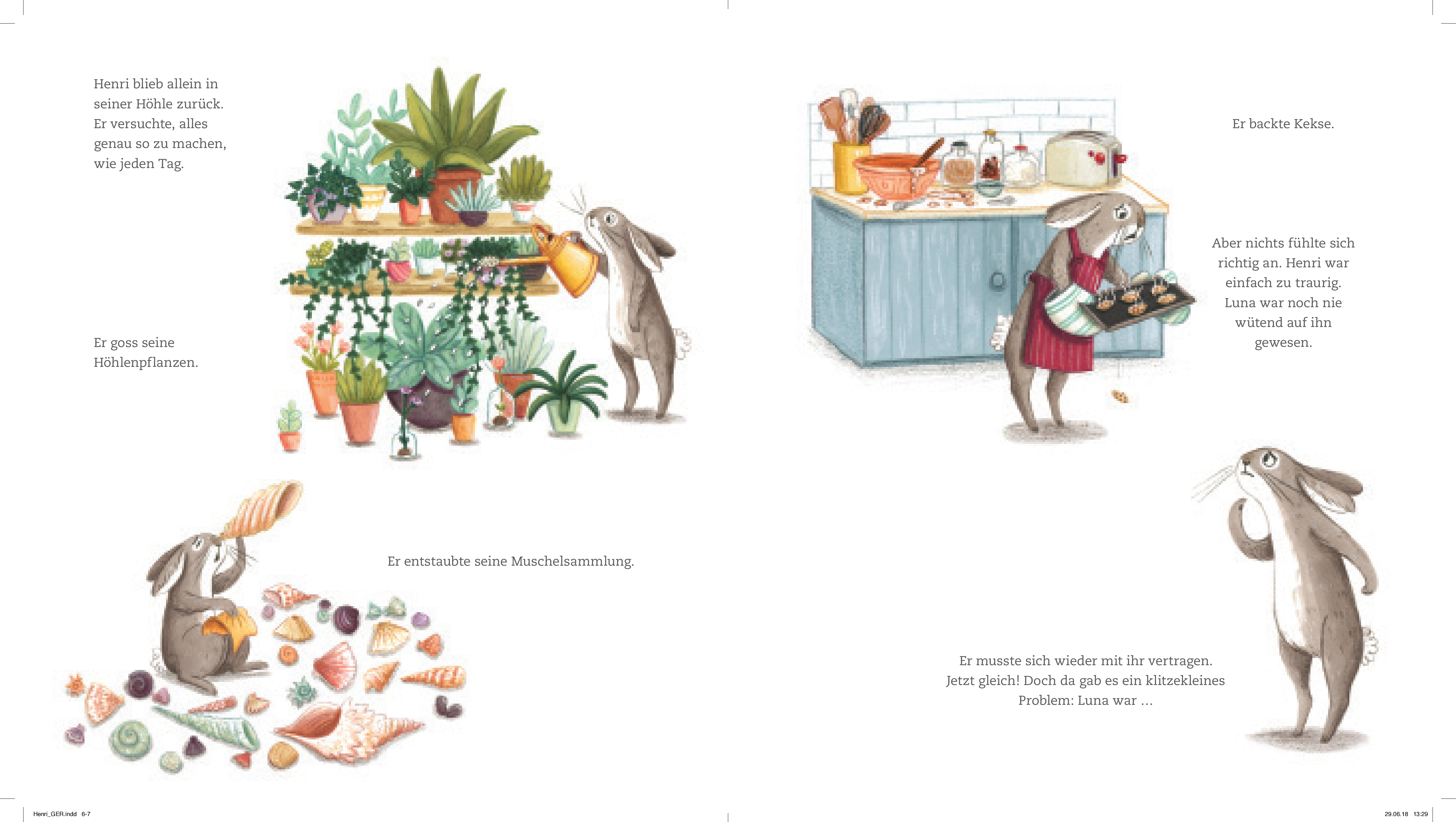 Der kleine Hase Henri ist ein richtiger Angsthase. Das findet auch seine Freundin Luna und stapft wütend davon, als er sich wieder mal weigert, seine Höhle zu verlassen. Mit schlechtem Gewissen und um sie zu suchen, überwindet er schließlich seine Angst. Draußen trifft er viele andere Tiere, taucht im Fluss, reitet auf einem Hirsch durch den Wald und tappst allein in eine dunkle Bärenhöhle. Doch schafft es der kleine Henri auch, Luna zu finden? Ein absolutes Mutmach-Buch mit einer ausdrucksstarken Bildsprache, das das Thema "Angst haben" wunderbar umsetzt und nicht nur Kinderherzen höher schlagen lässt.