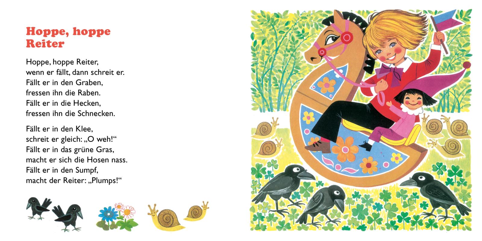"Hoppe, hoppe Reiter", "Ri-Ra-Rutsch" und "Alle meine Entchen" - die bekanntesten und beliebtesten Kinderreime sind in diesem Pappebuch versammelt.