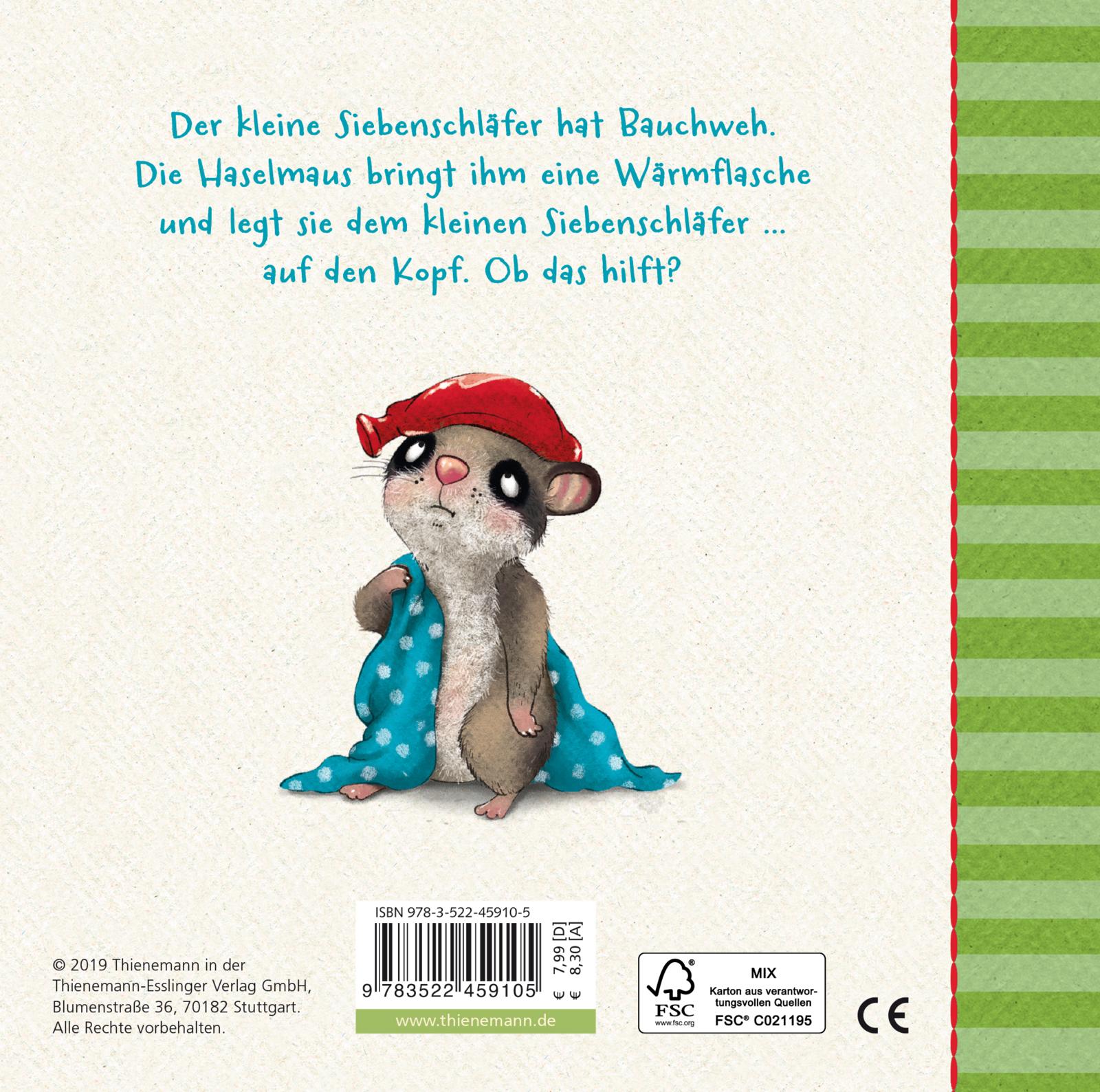 Der kleine Siebenschläfer hat Bauchweh. Die Haselmaus will helfen und bringt eine Wärmflasche. Sie legt sie dem kleinen Siebenschläfer ... auf den Kopf! Und dann ... auf den Fuß! Na, ob das noch etwas wird?