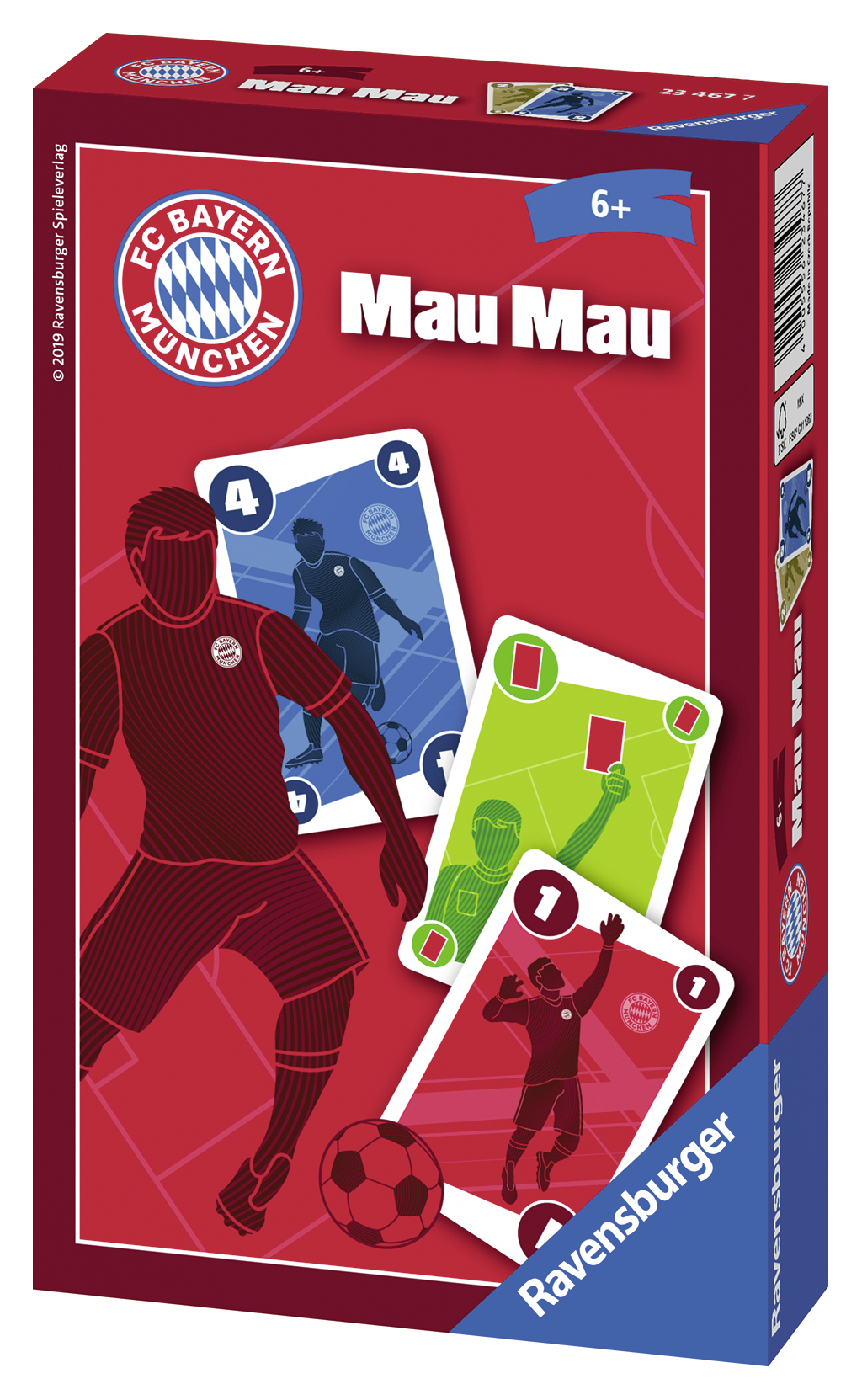 Der bekannte Kartenspiel-Klassiker Mau Mau als FC Bayern München Fußball Edition! Beim Mau Mau gewinnt, wer seine Karten zuerst ablegen kann. Beim Ablegen müssen die Karten in Farbe oder Zahlenwert übereinstimmen - Glück für den, der die passenden Karten auf der Hand hält! Aber manchmal zieht ein Mitspieler die rote Karte oder verlangt eine Nachspielzeit, um so das Karten-Match für sich zu entscheiden! Spiel-Inhalt: 55 Spielkarten. Spieleranzahl: 2-7. Spieldauer: 20 Min. Spieleanleitung in deutsch, französisch, italienisch.