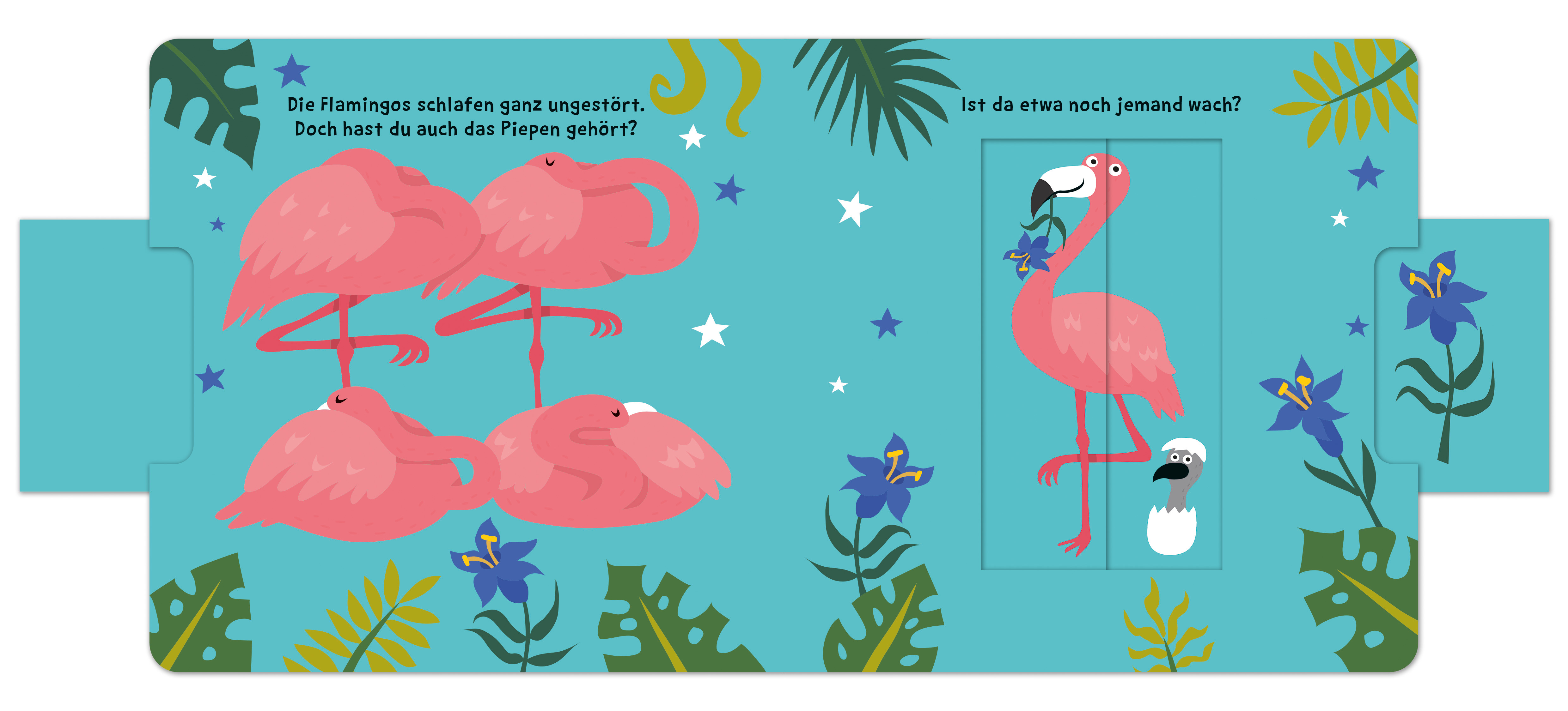 Ich habe mich sofort in dieses Buch verliebt. Die Illustrationen sind extrem süß und durch die Schiebeeffekte werden kleine Kinder involviert. Eine extrem gelungene Mischung!