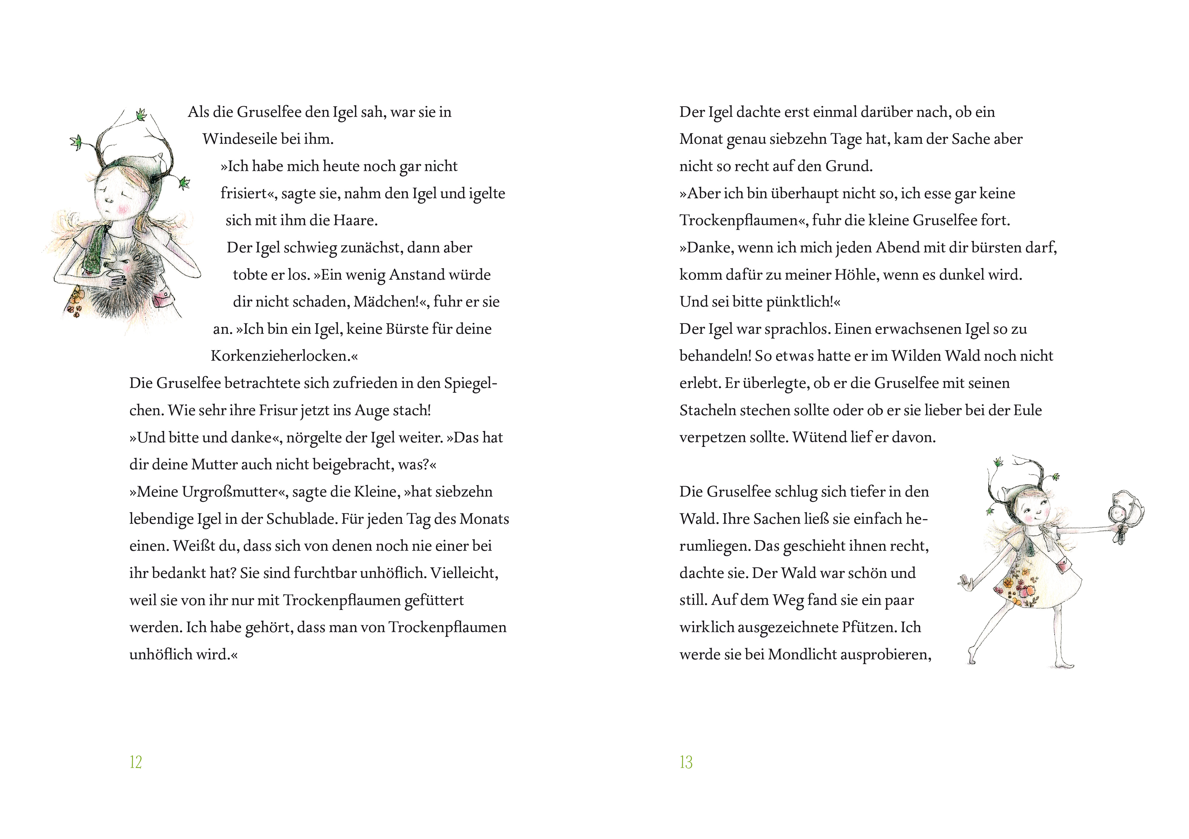 Holterdipolter ist die kleine Gruselfee plötzlich da. Der Südwind hat sie zu den Tieren des Wilden Waldes geweht. Selbstbewusst, unbekümmert und ganz schön frech breitet sie sofort ihre Siebensachen aus und kämmt sich mit einem Igel ungefragt die Haare. Sofort sind sich alle einig: Diese Gruselfee hat kein Benehmen! Einige wollen sie sogar auf der Stelle verjagen! Aber allmählich lernen sie die kleine Gruselfee besser kennen - und lieben.