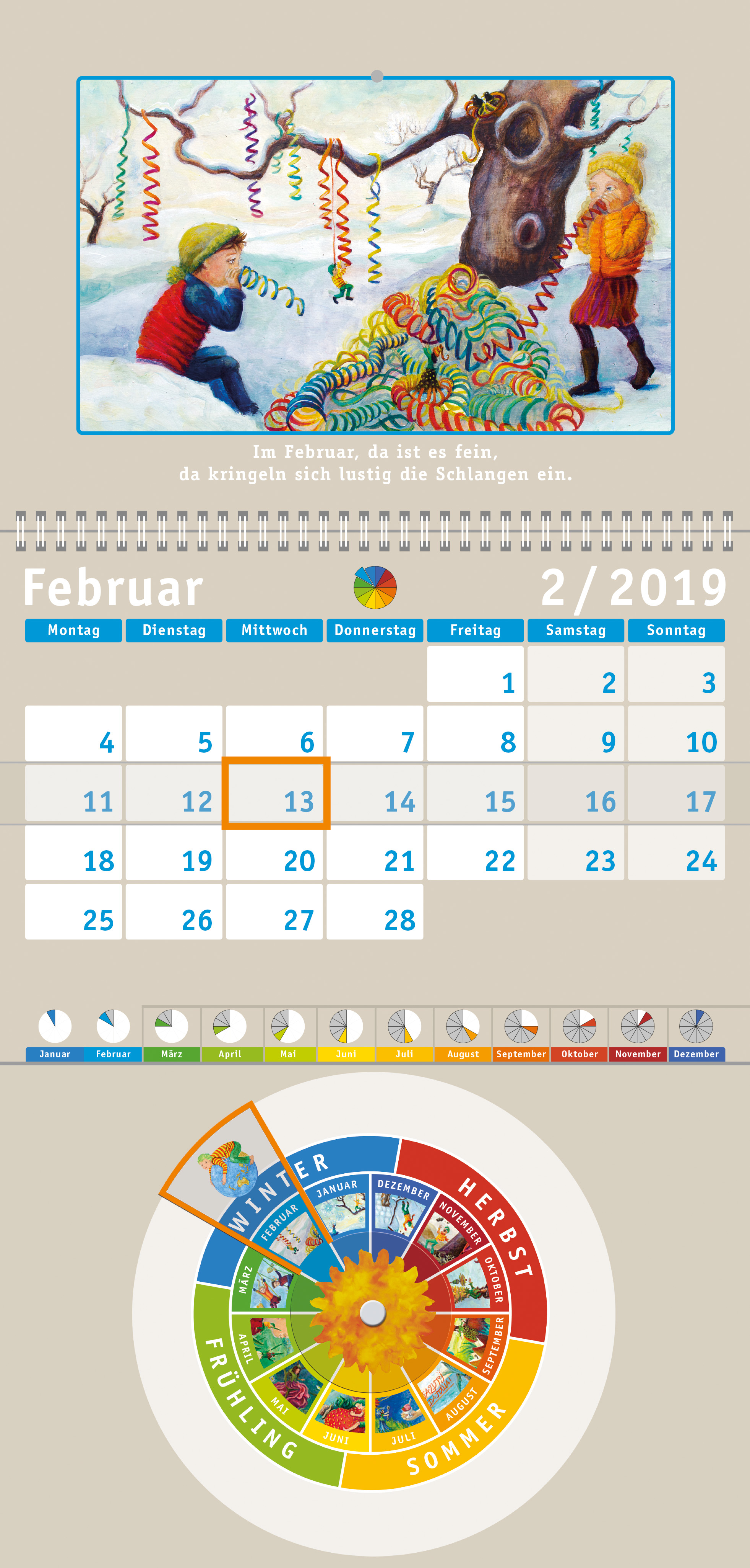 Der Kalender für Kinder mit den pädagogischen Elementen.
