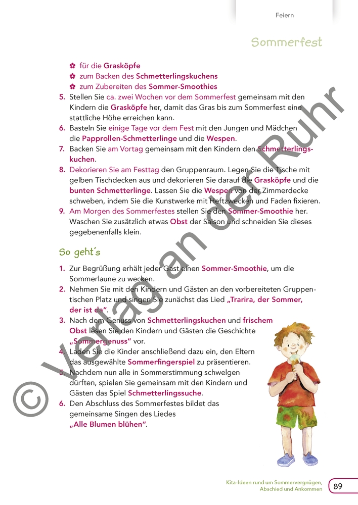| Schlagworte | Abschiedsfeier • Basteln • draußen • Erzieherinnen • Geschichten • Ideensammlung • Jahreszeit • Kinder • Kindertagesstätte • Kitafest • Kita-LeiterInnen • Lieder • Praxisratgeber • Rezepte • Sommer • Sommerfest • Spiele • Stimmungsvoll bebildert • Vorlesegeschichten • Willkommen |