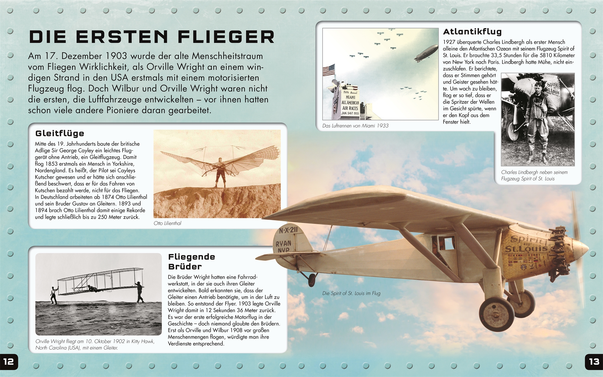 - Wissenswertes leicht vermittelt: Ob über die Anfänge der Luftfahrt, die ersten Flugversuche der Brüder Wright oder die berühmtesten Flugzeugmodelle des Ersten und Zweiten Weltkriegs (B.E.2., Fokker E.I, D17 Staggerwing, Supermarine Spitfire) - zu all diesen Themen gibt es interessante Sachinfos im Heft.