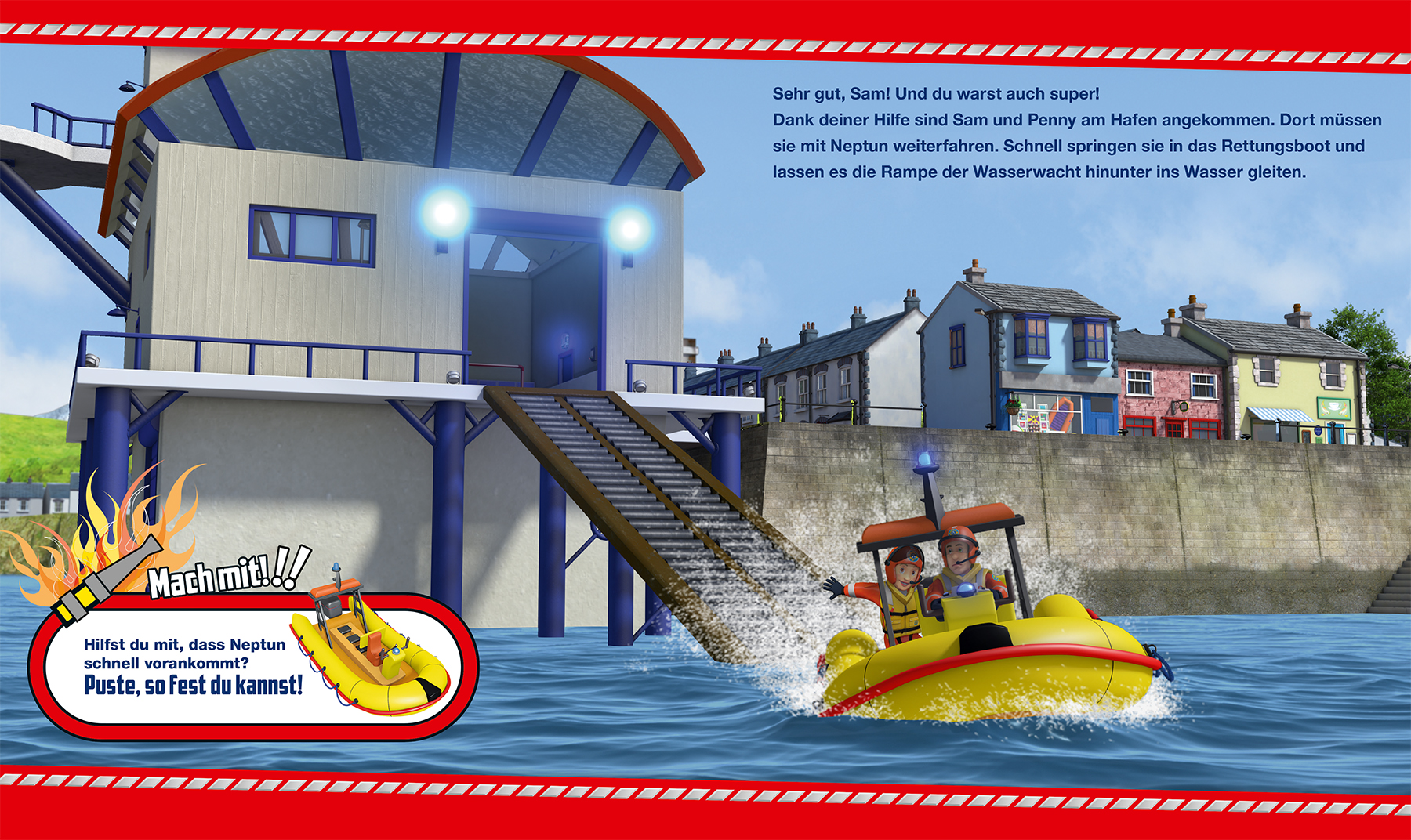 Ein großer Spaß für kleine Feuerwehrfans: Bei diesem Mitmachbuch werden sie Teil des Teams der Feuerwache von Pontypandy und begleiten Feuerwehrmann Sam bei einem spannenden Einsatz. Ob sie die Feuerwehrleute bei einem Notruf alarmieren, Sam helfen, Jupiter sicher durch die engen Straßen zu lenken oder kräftig pusten, damit das Rettungsboot Neptun auf dem Wasser schneller vorankommt: Hier können kleine Feuerwehrleute selbst aktiv werden und die Feuerwehr bei einer Rettungsaktion unterstützen.