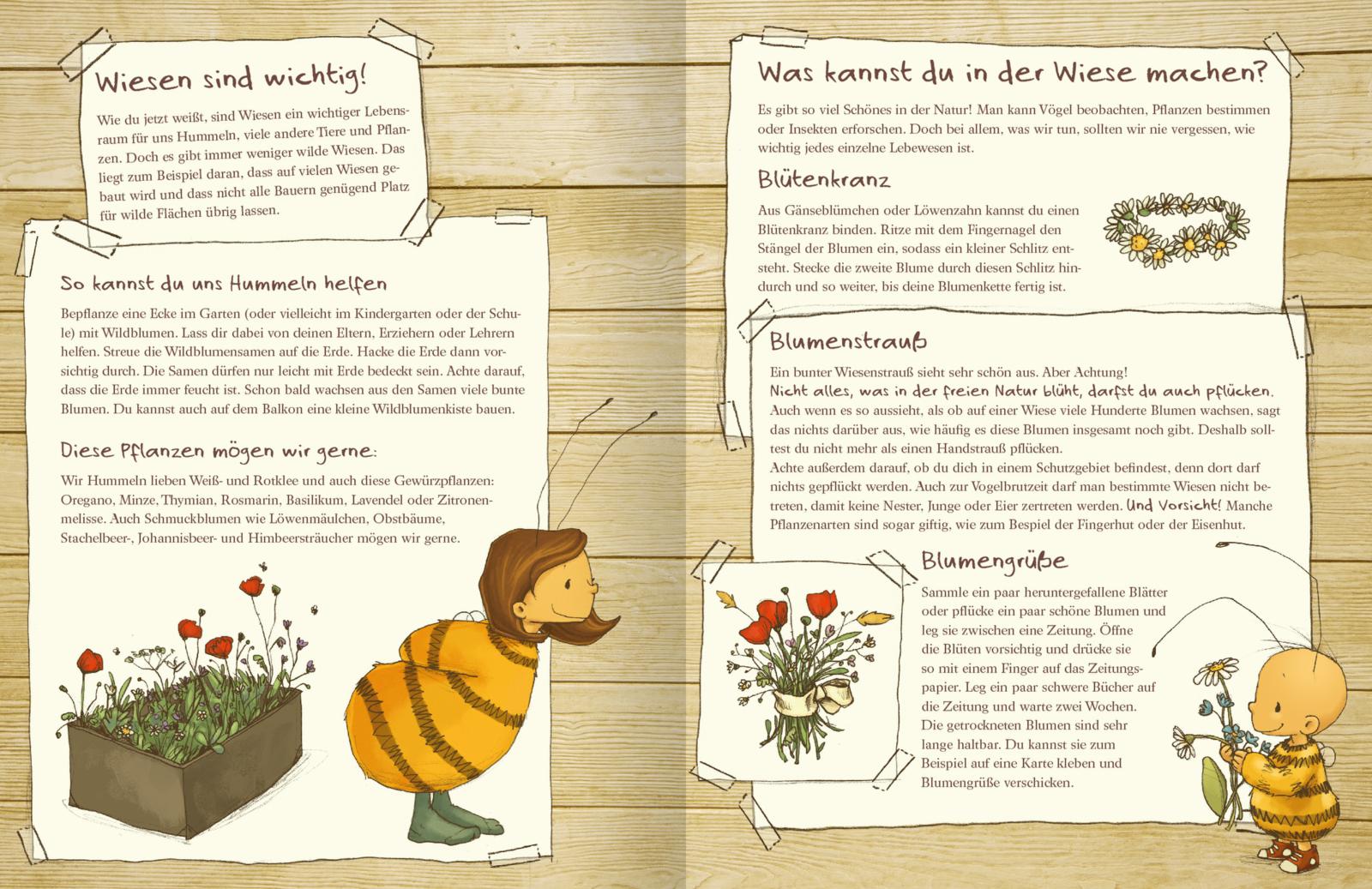 Komm mit der kleinen Hummel auf einen Spaziergang über eine kunterbunte Blumenwiese und lerne mehr über ihr Leben und ihr Zuhause kennen. Erfahre dabei, welche Tiere hier noch leben, welche Blumen hier blühen, was man auf einer Wiese alles machen kann und warum es so wichtig ist, die Wiese und Artenvielfalt zu schützen.