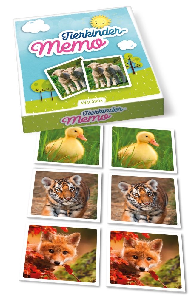 Wo liegt noch mal das Lämmchen? Bei diesem Spiel haben die Kleinen die Nase vorn! Kinder merken sich oft besser als Erwachsene, wo die gesuchte Karte versteckt ist. Tapsige Bärenkinder, flauschige Entchen, drollige Hundewelpen und viele weitere niedliche Motive machen das Tierkinder-Memo zum idealen Spiel für die ganze Familie. Nach dem bekannten Prinzip des Memo-Spiels werden immer zwei Spielkarten aufgedeckt, die ein Bilderpaar ergeben.