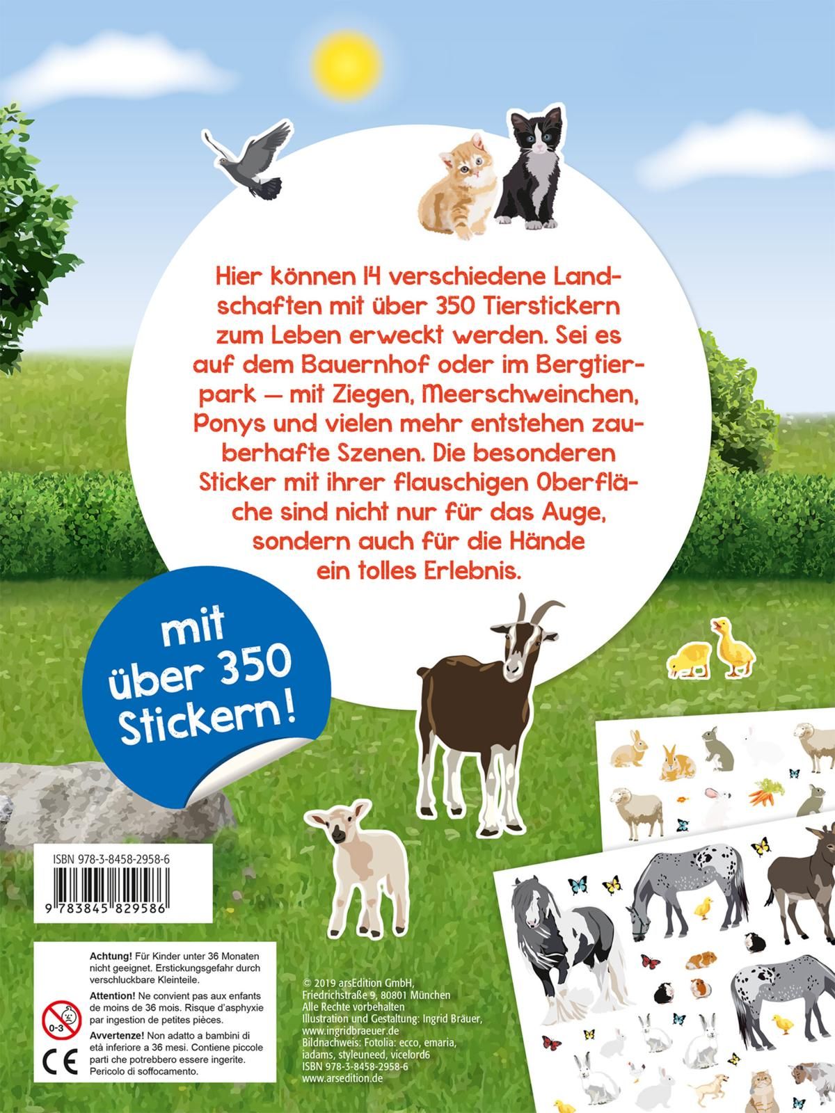- Tolle Bilder: Die 14 Szenen rund um die Streicheltiere sind schön illustriert und laden zum Stickern ein