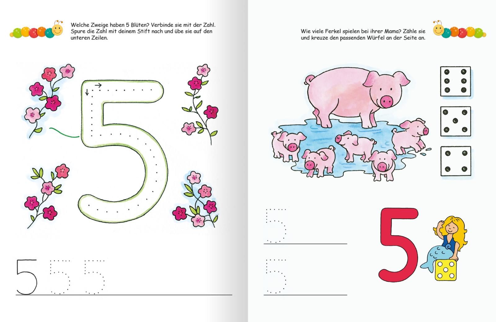 Spielend lernen! Die Lernraupe ist eine spannende, speziell für Kindergartenkinder konzipierte Lernreihe, die Spielen und Lernen miteinander kombiniert. Mit dem Übungsheft Erste Zahlen macht das Kennenlernen der Zahlen viel Spaß: Bunte, altersgerecht illustrierte Aufgaben fördern spielerisch den Umgang mit Mengen und Zahlen und bieten so einen optimalen Einstieg in die Mathematik. Dank abwischbarer Seiten können die Aufgaben mit dem beigefügten Stift beliebig oft wiederholt werden. Ein großer Zähl- und Schreibspaß mit Lerneffekt!