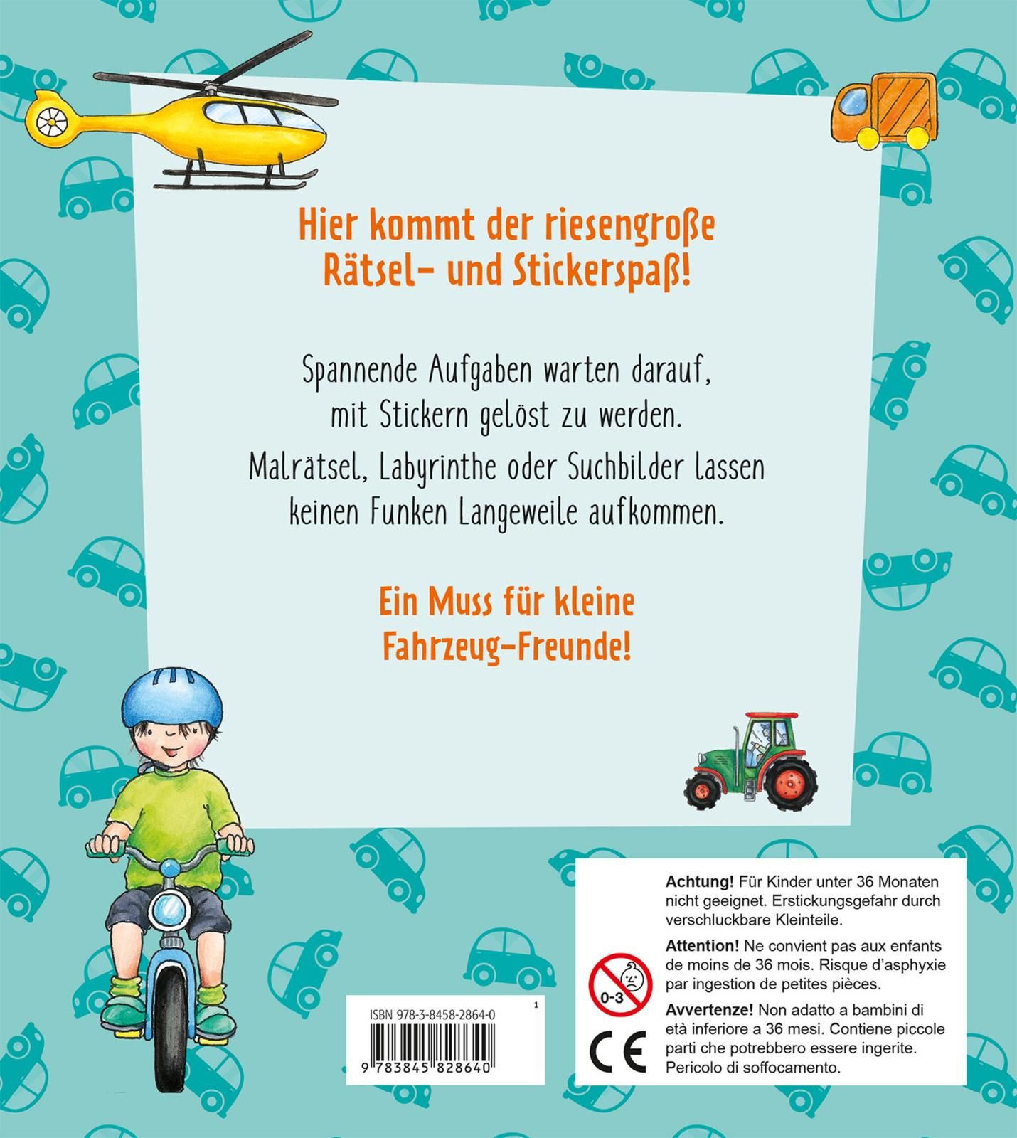 Hier kommt der riesengroße Rätsel- und Stickerspaß rund um Fahrzeuge! Spannende Aufgaben warten darauf, mit Stickern gelöst zu werden. Malrätsel, Labyrinthe oder Suchbilder lassen keinen Funken Langeweile aufkommen. Ein Muss für kleine Fahrzeug-Fans!