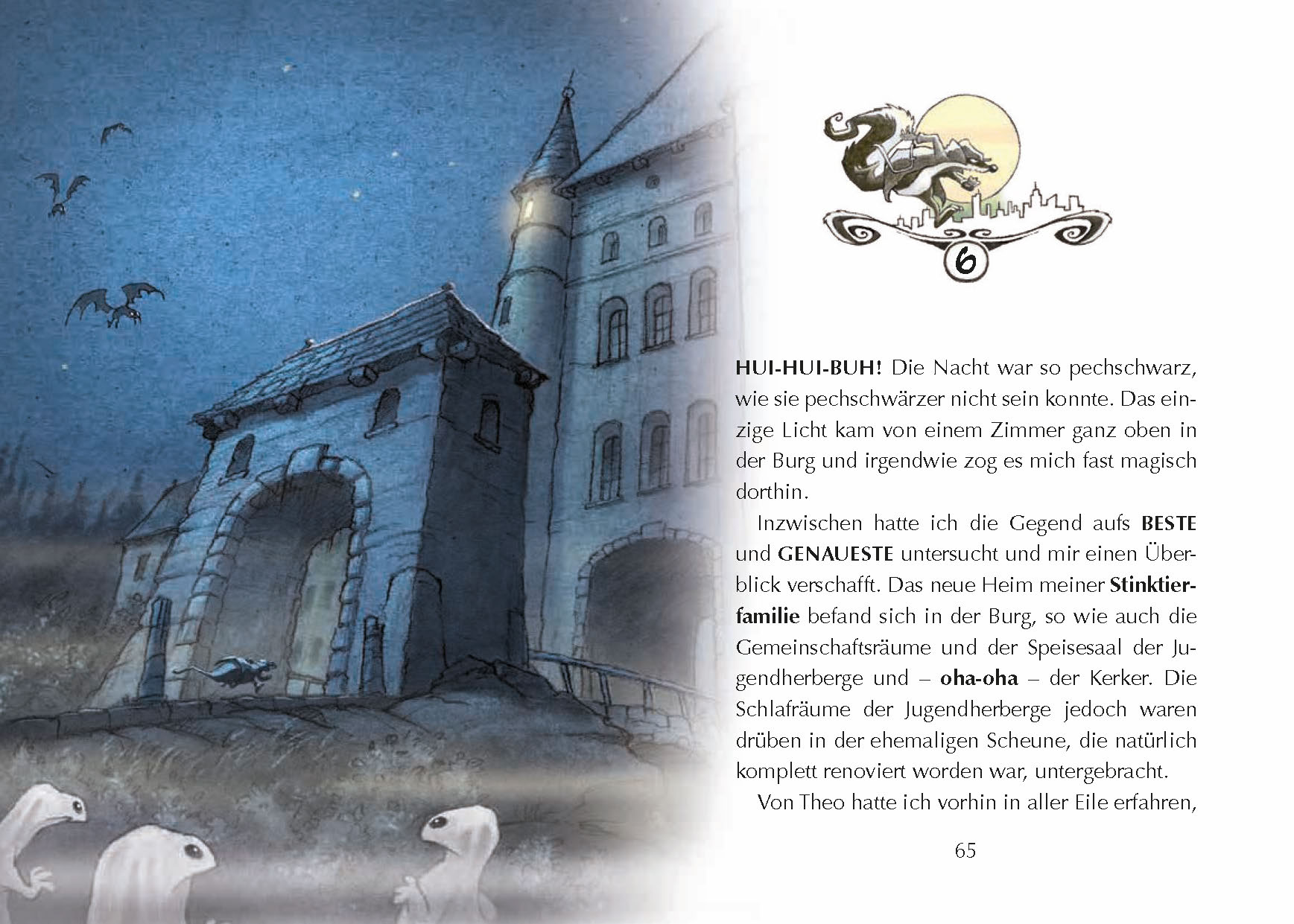 'Flätscher', das coolste Stinktier der Stadt, braucht ganz dringend Urlaub. Da trifft es sich gut, dass Theo gerade ins Landschulheim aufbricht. Heimlich versteckt er 'Flätscher' in seiner Reisetasche und los geht's! Das Landschulheim ist in einer Burg in schönster Lage untergebracht. Schon nach zwei Tagen Tiefschlaf ist 'Flätscher' so entspannt wie nie - und achtet nicht mal mehr auf seine immer wieder zuckende Spürnase. Bis ihn eines Nachts ein gellender Schrei zurück in die Realität katapultiert: Gruselige Gespenster haben die Burg fest im Griff! Aber 'Flätscher' ist jetzt hellwach und zu 100 Prozent im Ermittlermodus.