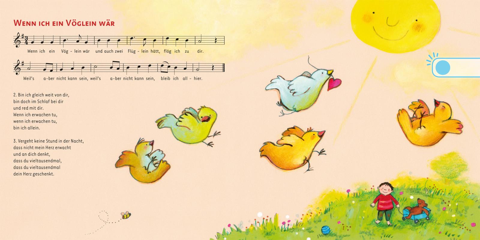 Auf Knopfdruck erklingen die Melodien 6 beliebter Kinderlieder und laden zum Mitsingen ein.