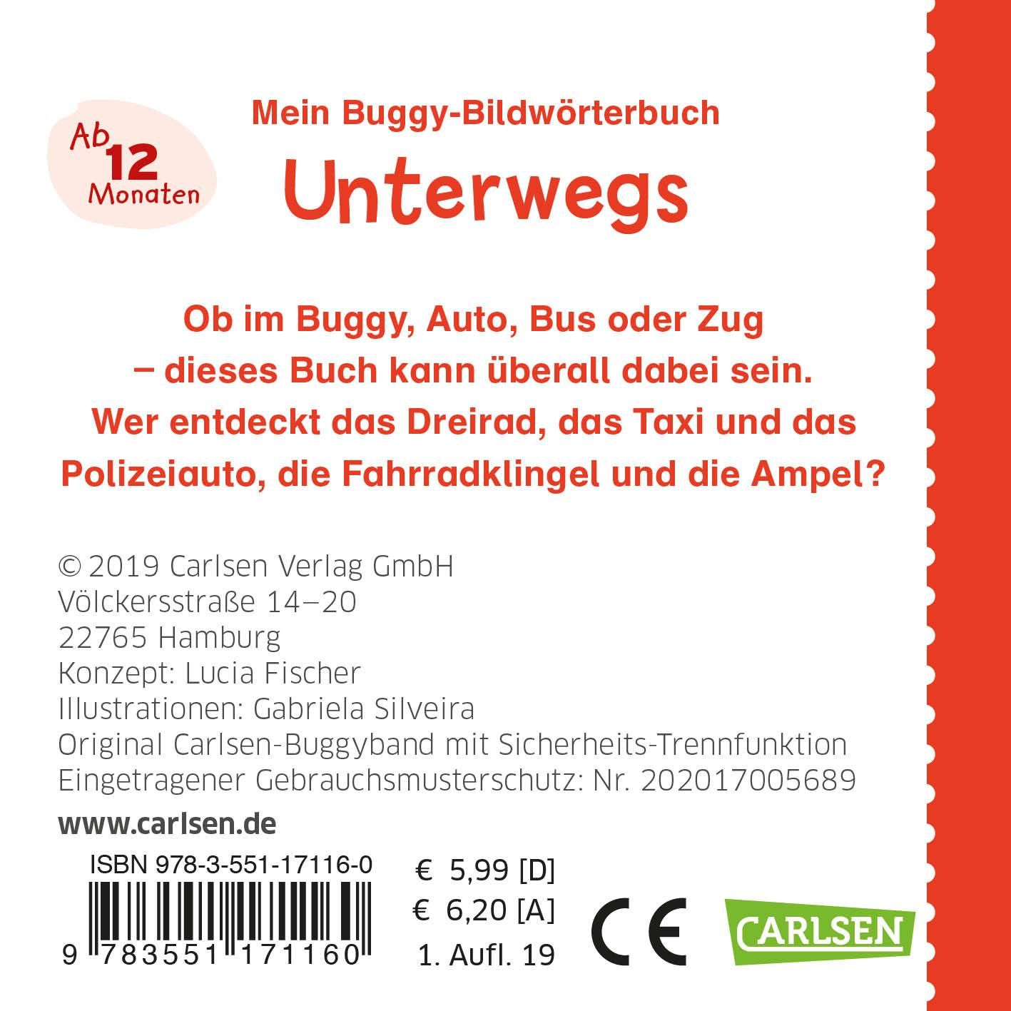 Ob im Buggy, Auto, Bus oder Zug ... Dieses kleine Pappbilderbuch kann überall mit dabei sein. Wer kann Dinge, die unterwegs begegnen, im Buch wiederentdecken und kennt schon ihren Namen? Ein stabiles Bilderbuch für kleine Fahrzeugfans mit hygienischem Buggyband in bewährter Qualität.