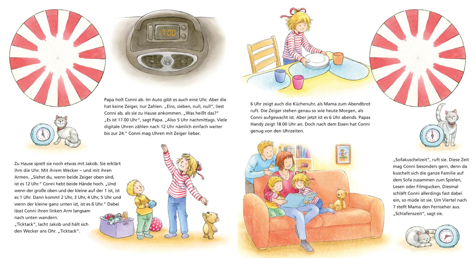 Aber sie kann die Uhr noch nicht lesen. Zum Glück hat Mama versprochen, es ihr zu erklären, und schnell stellt Conni fest: So schwer ist das gar nicht!