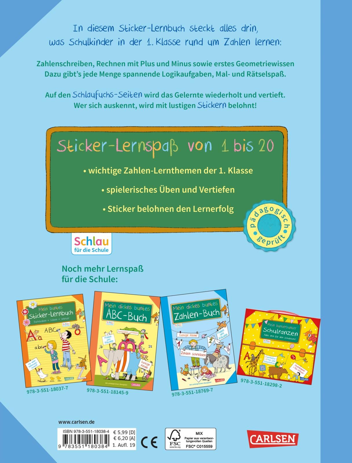 In diesem Sticker-Lernbuch steckt alles drin, was Schulkinder in der 1. Klasse rund um Zahlen lernen: