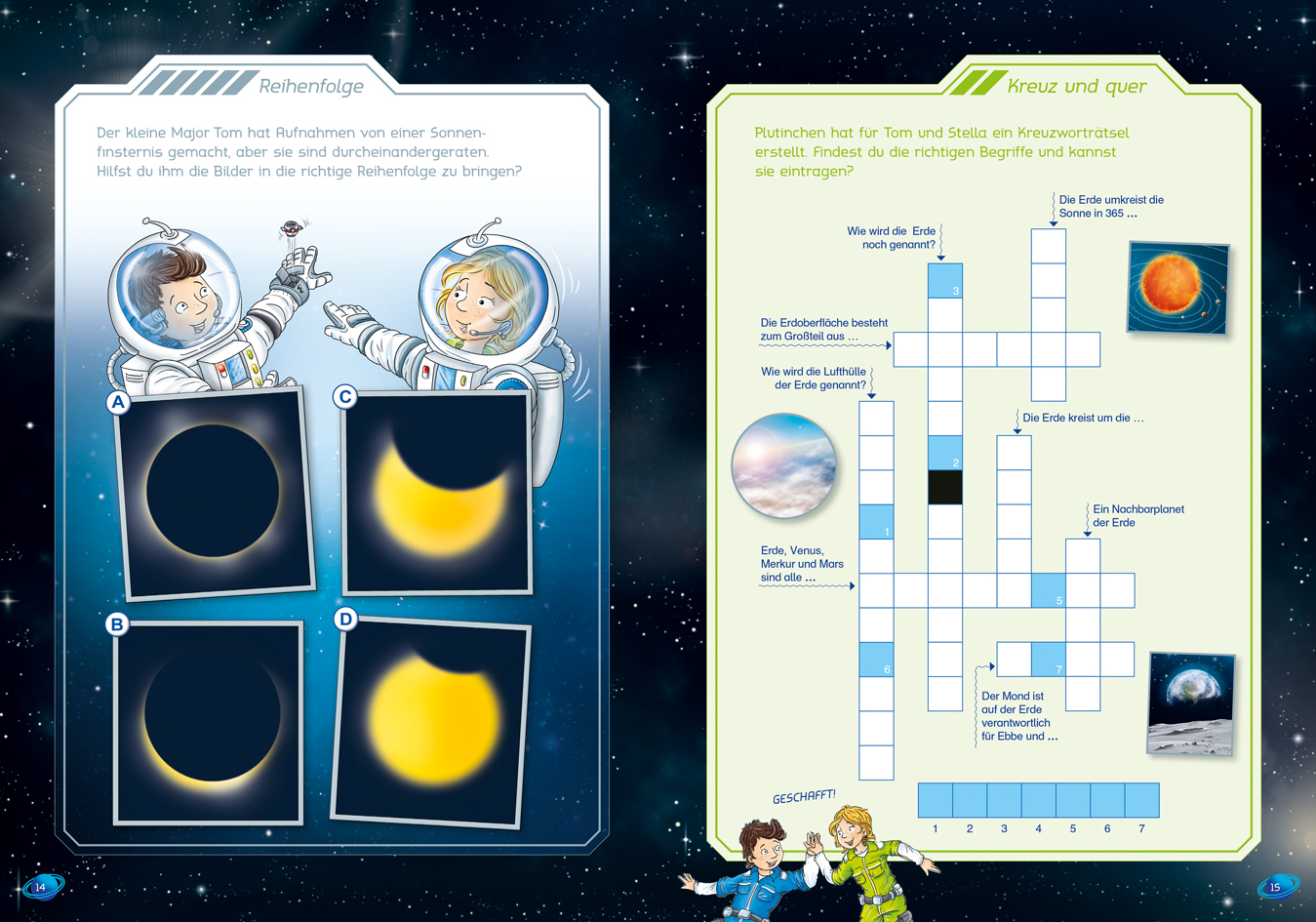| Schlagworte | ab 7 Jahren • Abenteuer • Astronaut • Blick • Der kleine Major Tom • Erde • Fenstersticker • Freundschaft • Gefahr • Gefährlich • Kreuzworträtsel • Lieblingsbuch • Planeten • Plutinchen • Punkt zu Punkt Sudoku • Rätsel • Rätselheft • Rätselspaß • Raumstation • Roboter • Space Racer • Spaß • Stella • Weltall • Weltraum |