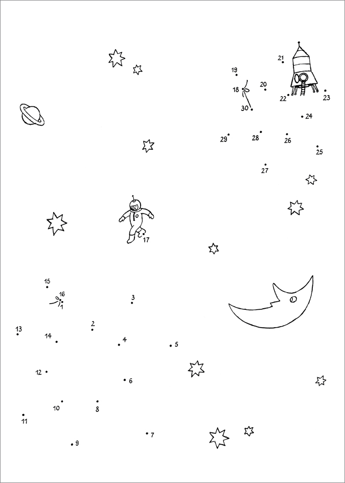 Werden die einzelnen Punkte - Zahlen von 1 bis 30 - in der richtigen Reihenfolge verbunden, entstehen tolle Bilder. Dinosaurier, Katze oder Pinguin - sie können nach Belieben ausgemalt werden.