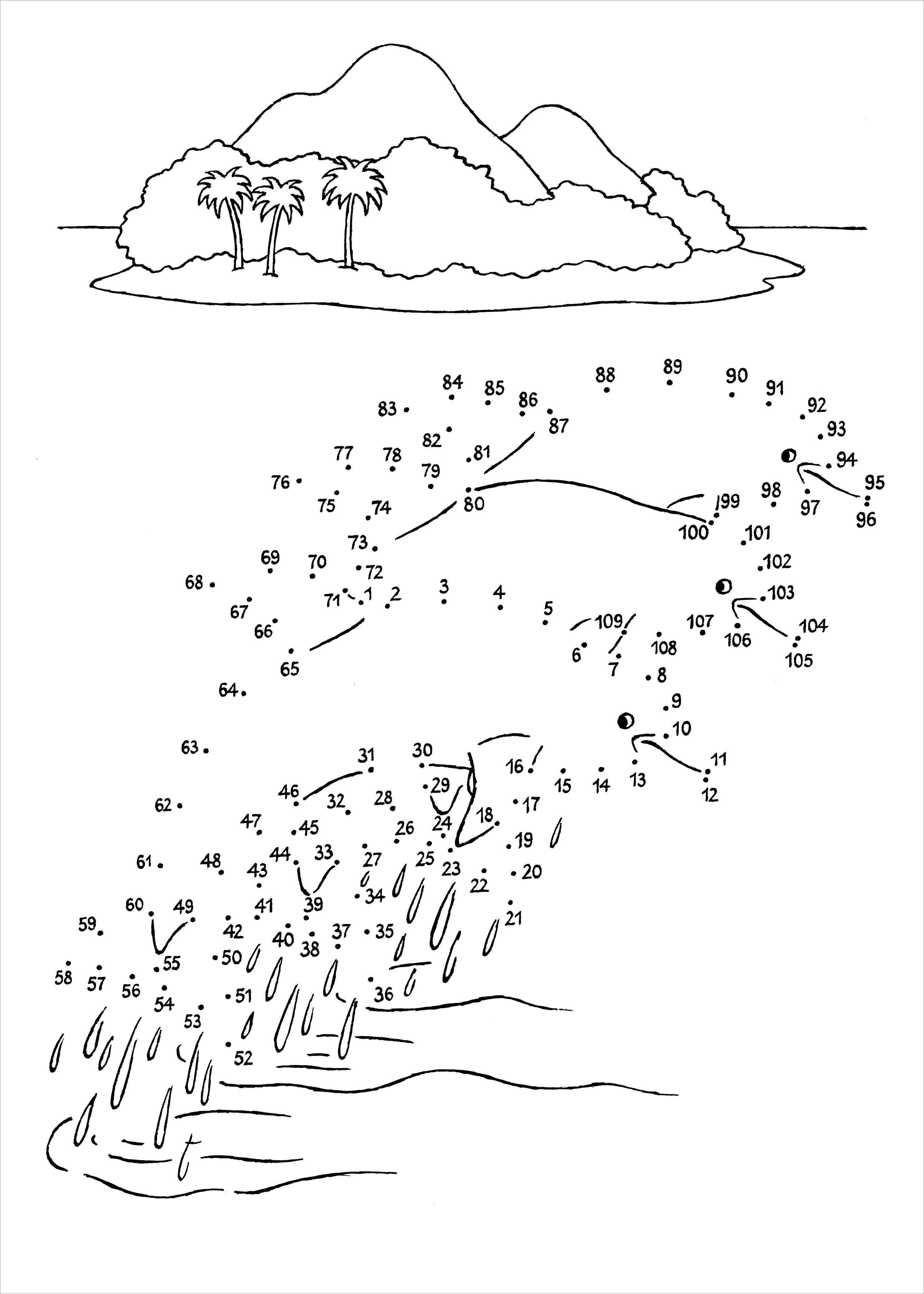 Werden die einzelnen Punkte - Zahlen von 1 bis 133 - in der richtigen Reihenfolge verbunden, entstehen tolle Bilder. Affe, Sonnenblume oder Märchenschloss - sie können nach Belieben ausgemalt werden.
