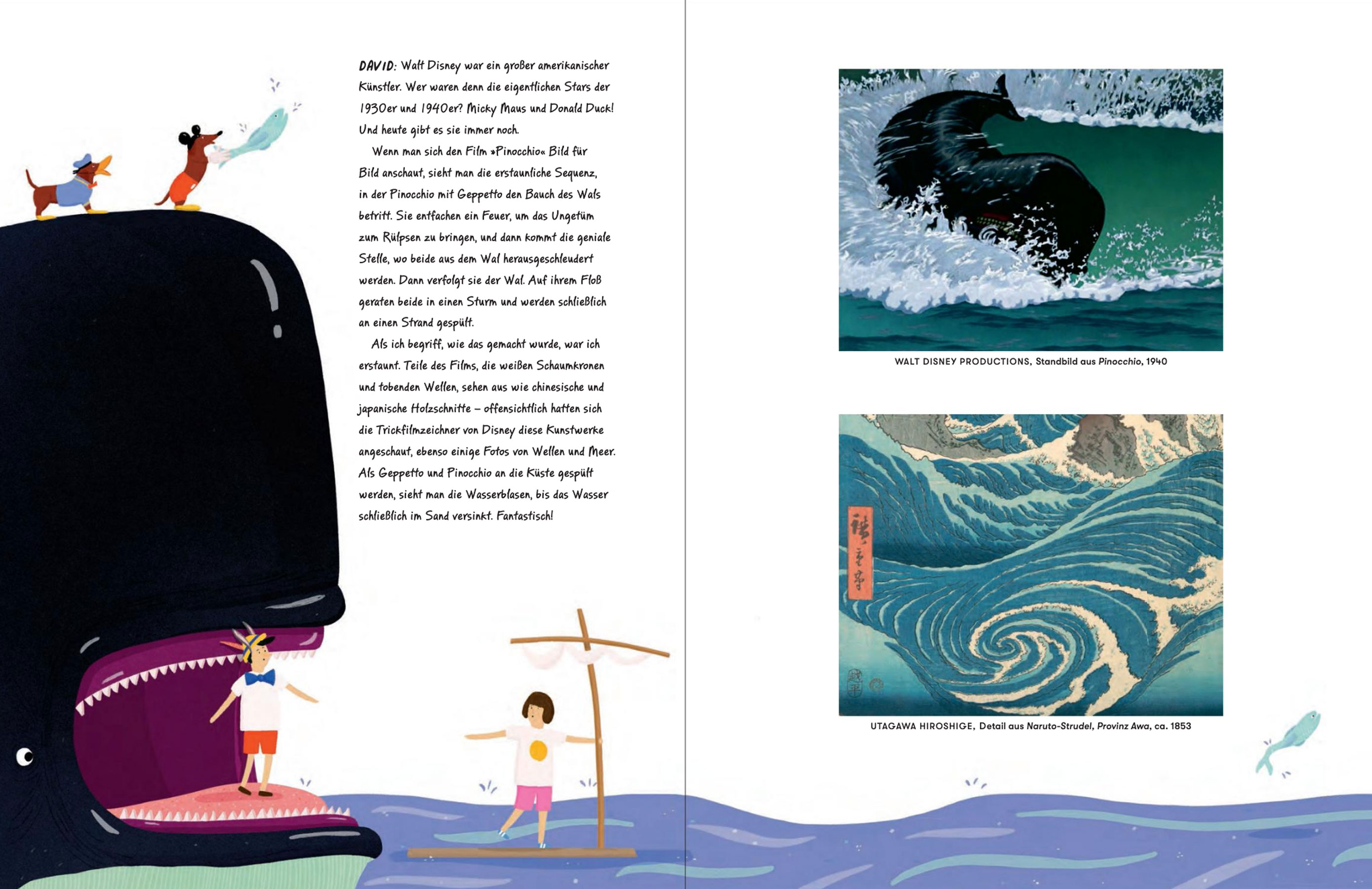 Die Illustrationen von Rose Blake untermalen die Erzählungen der Autoren, um die Geschichte der Kunst einem jungen Publikum nahe zubringen.