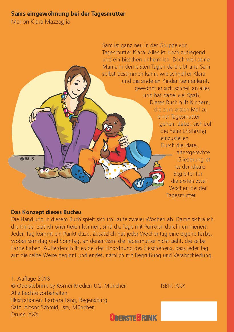 Sam ist ganz neu in der Gruppe von Tagesmutter Klara. Alles ist noch aufregend und neu. Doch weil seine Mama in den ersten Tagen dableibt und Sam selbst bestimmen kann, wie schnell er Klara und die anderen Kinder kennenlernt, gewöhnt er sich an alles und hat dabei viel Spaß. Dieses Buch hilft Kindern und Eltern bei der Eingewöhnung bei der Tagesmutter. Durch die klare und detaillierte Darstellung ist es der ideale Begleiter für die erste Zeit in der neuen Umgebung.