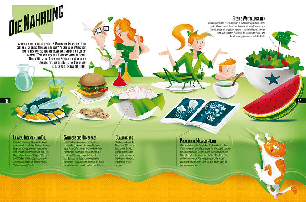 Wir sind im Jahr 2050. Autos fahren von selbst, ein 3-D-Drucker produziert Mahlzeiten, unsere Kleidung ändert je nach Bedarf Form und Länge, Züge fahren mit Überschallgeschwindigkeit in Vakuum-Tunneln. Sieht so wirklich unsere Zukunft aus? Dieses Buch schildert mit detaillierten Texten und klaren und vergnüglichen Illustrationen das Leben einer typischen Familie in der Zukunft. Wir können uns vorstellen, wie wir uns von einem Ort zum anderen bewegen, wie wir kommunizieren, was wir essen, wie unsere Städte aussehen, was wir anziehen, was wir arbeiten und wie wir unsere Freizeit verbringen werden. Alle Gegenstände in diesem Buch basieren auf wissenschaftlichen Dokumenten und könnten in der unmittelbaren Zukunft erzeugt werden. Eine Wirklichkeit, die es noch nicht gibt, die aber immer näher rückt und zudem umweltfreundlich ist. Seid ihr bereit zu einer aufregenden Reise voller Überraschungen?