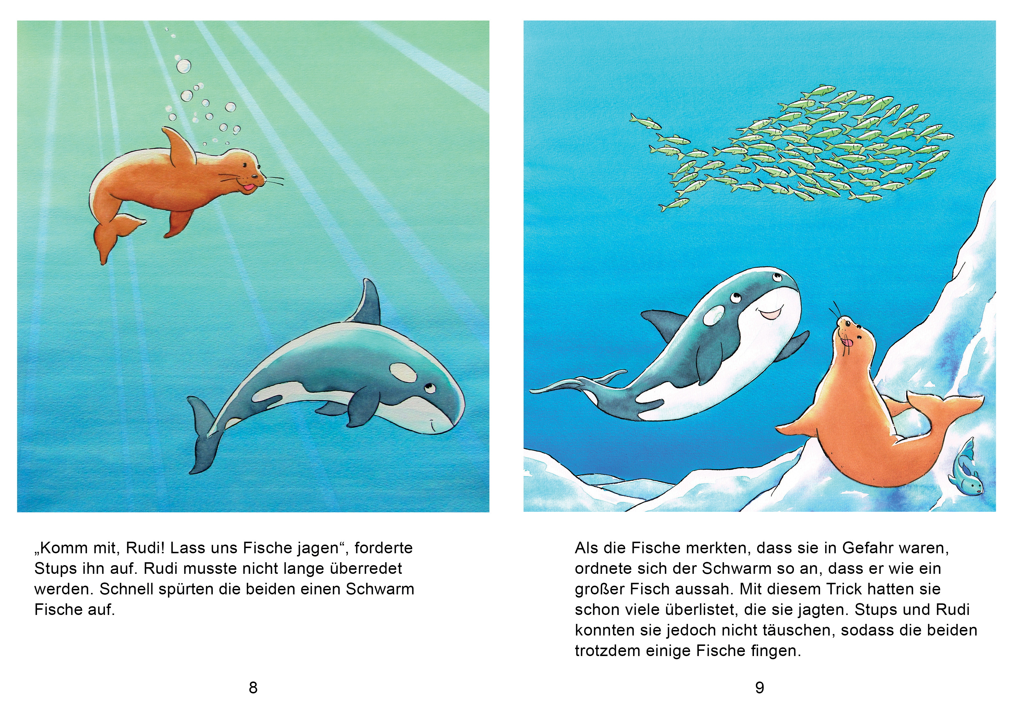 Stups, der Schwertwal, und der Seehund Rudi sind die besten Freunde. Im Eismeer erleben sie gemeinsam tolle Abenteuer. Doch eines Tages gerät Rudi in große Gefahr. Stups überlegt verzweifelt, wie er seinem Freund Rudi helfen kann. Da hat er eine tolle Idee.