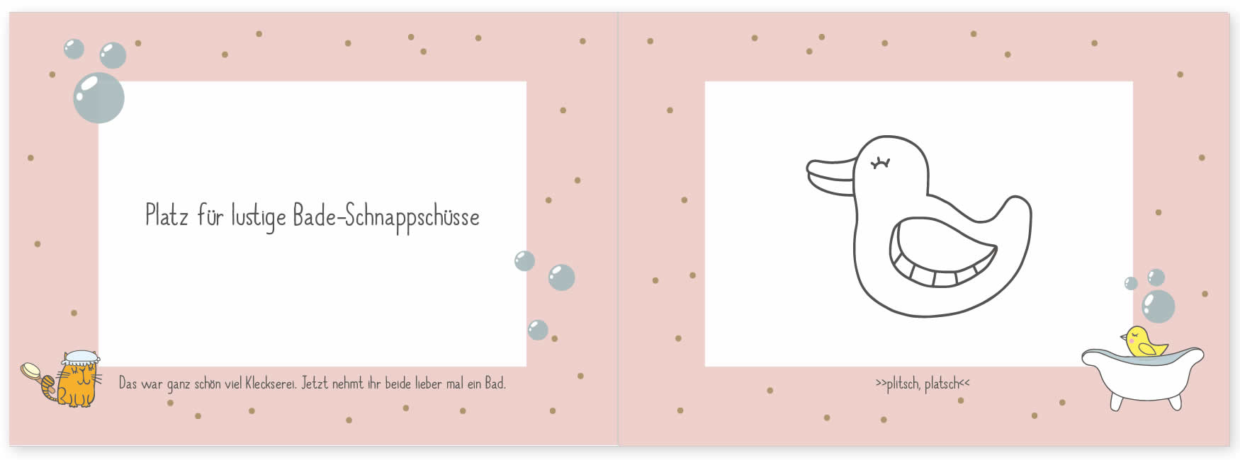 Das Taschenbuch mit Softcover im DIN A5 Format enthält neben ausreichend Platz für Geschwister-Fotos z. B. beim ersten Kennenlernen, dem ersten gemeinsamen Urlaub oder dem ersten Weihnachtsfest auch einige Aktionsseiten. So können z. B. Hand-Abdrücke verewigt und lustige Fingerabdruck-Tierchen gestempelt werden. Oder es werden Urlaubserinnerungen als Gemälde bzw. Bastelarbeit festgehalten. Und Essens-Kleckse werden mit Wasserfarben aufs Papier gebracht. Mit insgesamt 48 Seiten für Fotos, Texte und Mal- und Bastel-Spaß ergibt dies einen richtigen Erinnerungsschatz, den jedes Geschwisterkind bestimmt auch als Erwachsener einmal gerne wieder in die Hand nehmen und durchblättern wird.