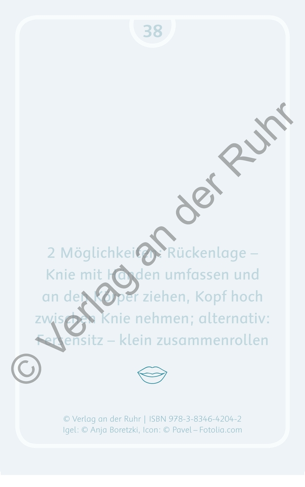 | Schlagworte | Atemschulung • Atemübungen • ayres • Bewegungsförderung • Bewegungstherapie • einfach • Ergotherapie • Ergotherapie-Materialien • Erzieherinnen • Flehming • Förderkräfte • förderschullehrerinnen • Förderung Bewegung • Frühkindliche Restreflexe • grobmotorik fördern • Grundschullehrerinnen • Haltungsschulung • Ideensammlung • Inklusion • Karteikarten • Karten für die Förderung von Bewegung und Motorik • Kesper • Kiesling • Kinder • kindgerecht Motorik fördern • Kita • Kita-LeiterInnen • Kita-Leitungen • Methoden • Motopäden • Motopädie • Motorik-Förderung • Motorikübungen • Neuromotorik • Neurophysiologie • Psychomotorik • Rotatherapie • Sensomotorik • Sensomotorische Entwicklungsförderung • Sensorische Integration • Spiele • spielerisch Bewegung fördern • spielerisch Motorik fördern • Spiraldynamik • Therapeuten • Therapie • Verbesserung der Motorik • Yoga |
