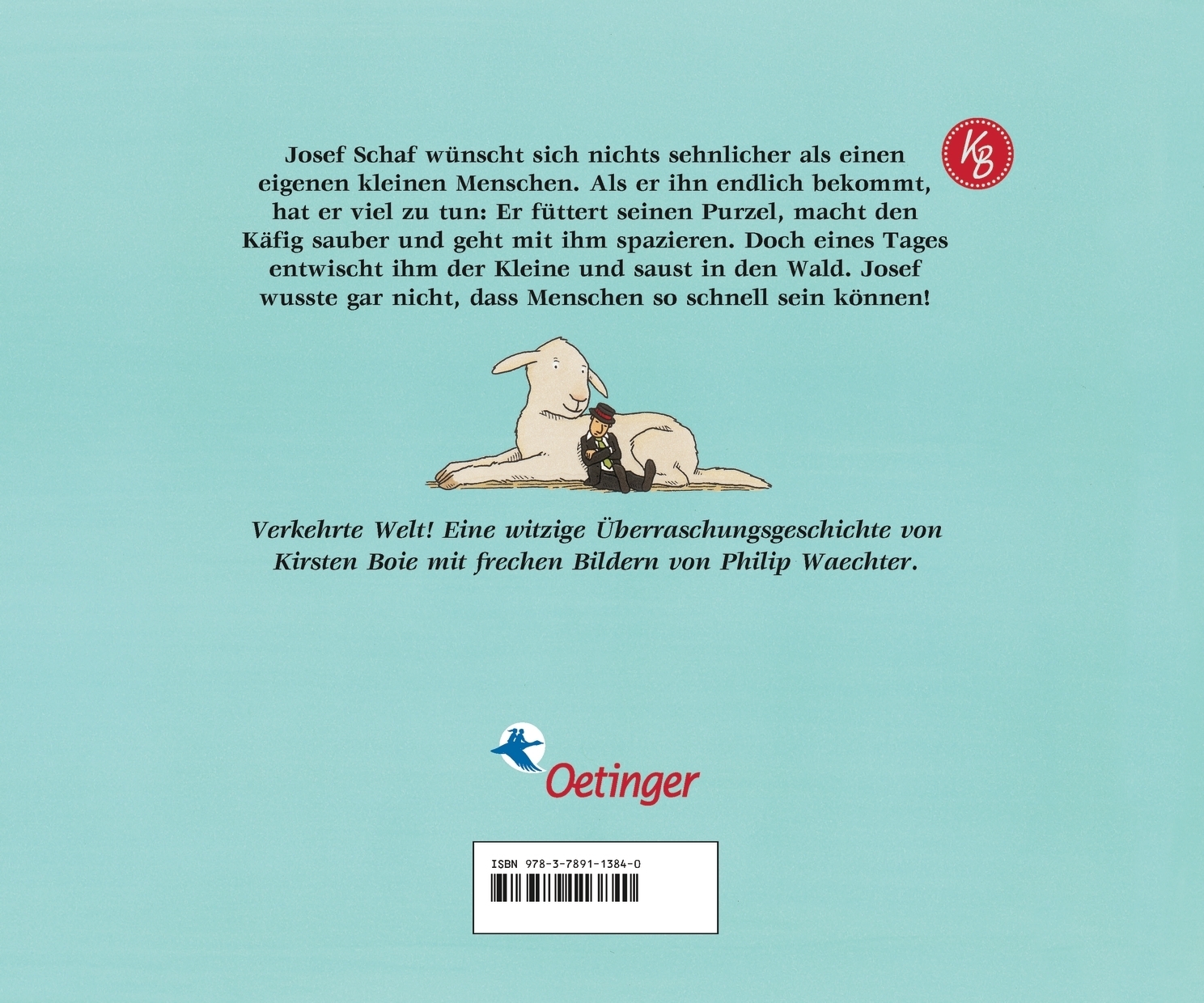 Verkehrte Welt! Josef Schaf möchte so gerne einen Menschen haben - als Haustier! Josef Schaf wünscht sich nichts sehnlicher als einen eigenen kleinen Menschen. Als er ihn endlich bekommt, hat er viel zu tun: Er füttert seinen Purzel, macht den Käfig sauber und geht mit ihm spazieren. Doch eines Tages entwischt ihm der Kleine und saust in den Wald. Josef wusste gar nicht, dass Menschen so schnell sein können!