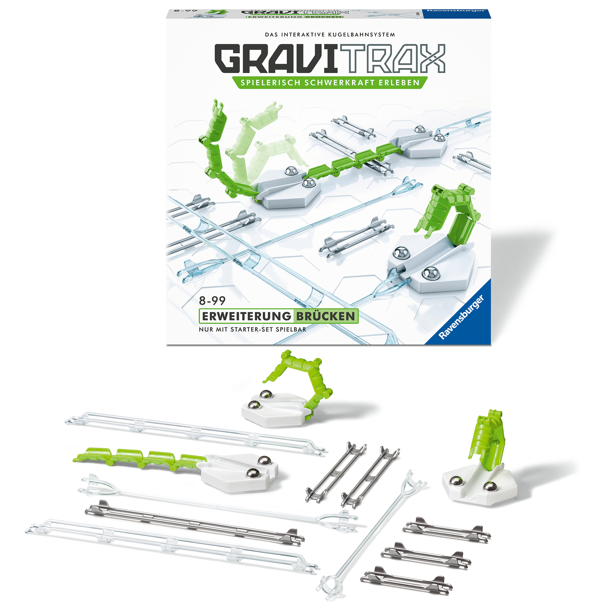 Überbrücke Streckenabschnitte! Mit dem Brückenset erweiterst du die Möglichkeiten deiner Bahn. Verbinde Streckenabschnitte spektakulär miteinander und erhalte dadurch eine Vielzahl neuer Bau- & Kombinationsmöglichkeiten. Welche neuen Wege erschließt deine Kugel mit dem Brückenset? Spiel-Inhalt: 3 längenverstellbare Brücken, 2 dünne Schienen extralang, 2 langsame Schienen extralang, 1 Schiene lang, 2 Schienen mittel, 3 Schienen kurz, 1 Anleitung. Spieleanleitung in deutsch, niederländisch, spanisch, französisch, italienisch, englisch.
