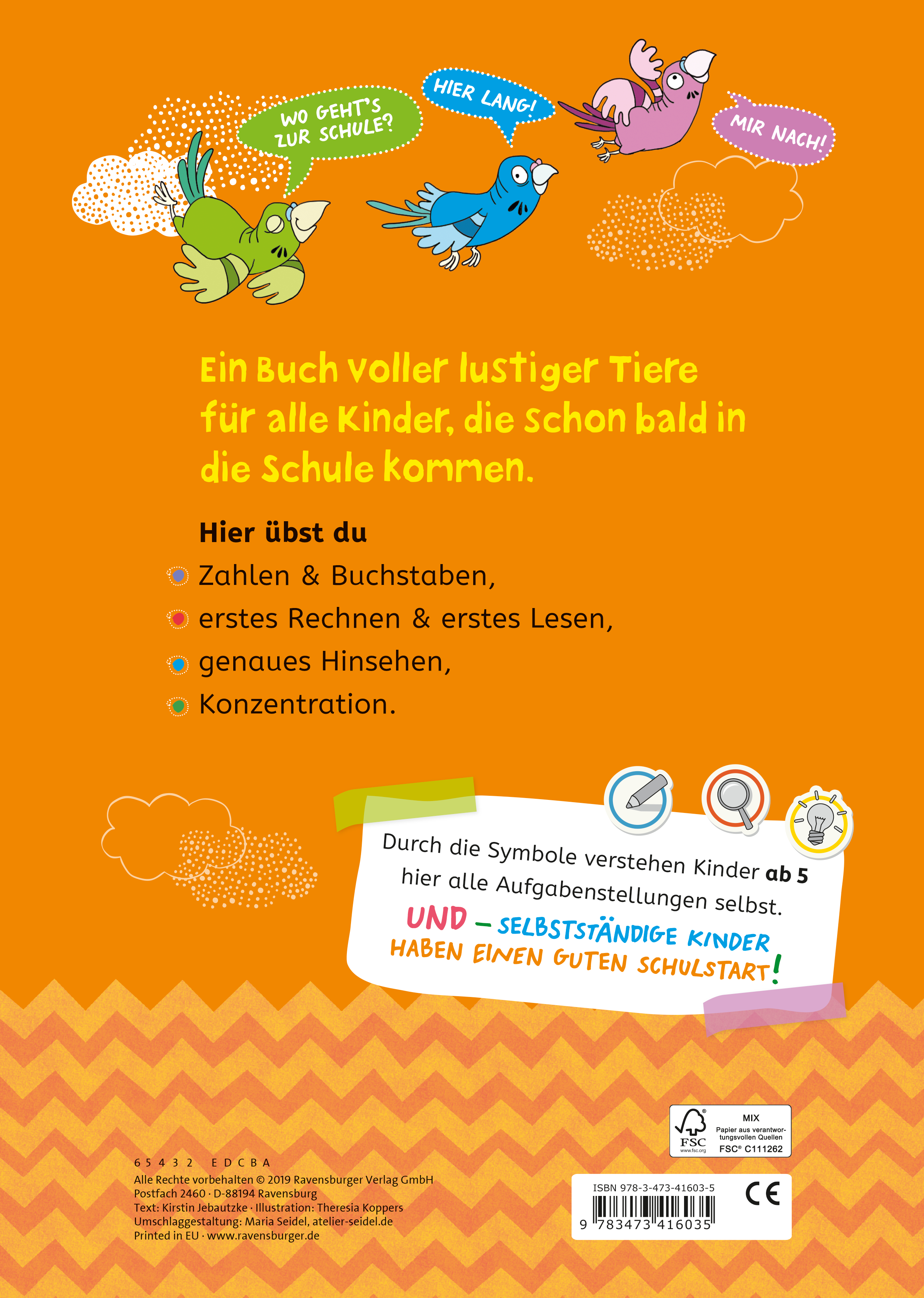 Eine Bande lustiger Tiere präsentiert den Kindern alles, was sie in der spannenden Zeit vor der Schule wissen müssen: Erste Buchstaben, Erste Zahlen, Erstes Lesen, Erstes Rechnen, Wahrnehmung und Konzentration sowie Übungen zur Schulung des genauen Arbeitens. Sebstständigkeit wird hier groß geschrieben. Dank der Symbole und Beispiele können auch Nichtleser die Aufgaben ohne fremde Hilfe bewältigen.
