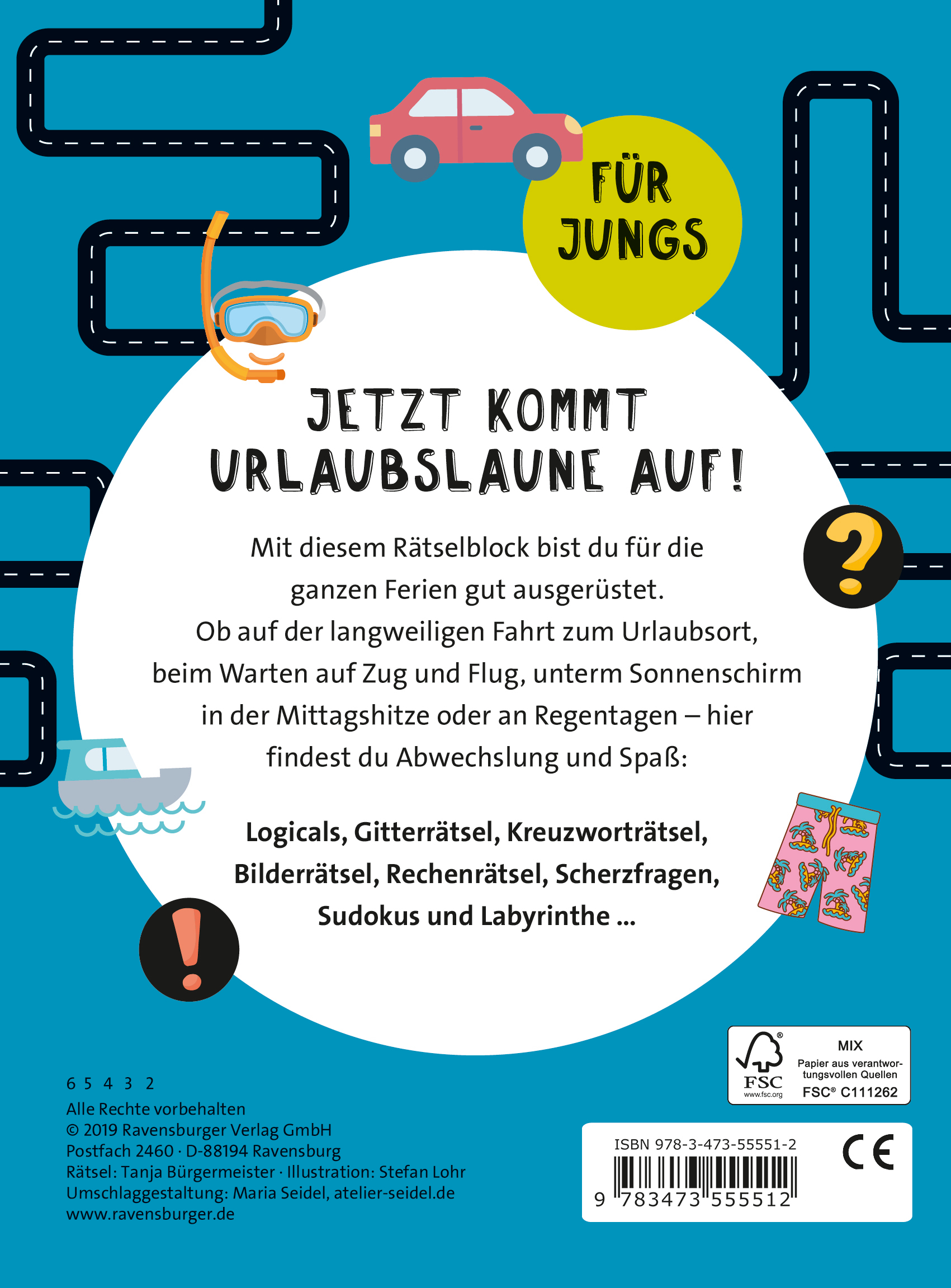 Jungs machen anders Urlaub als Mädchen. Mit diesem Rätselblock sind Jungs ab 7 den ganzen Urlaub für jede langweilige Situation ausgerüstet. Ob auf der Fahrt oder dem Flug zum Urlaubsort, beim Warten auf Zug und Flug, unterm Sonnenschirm in der Mittagshitze, an Regentagen, 80 lustige Rätsel lassen die Zeit schnell vergehen und machen Spaß.
