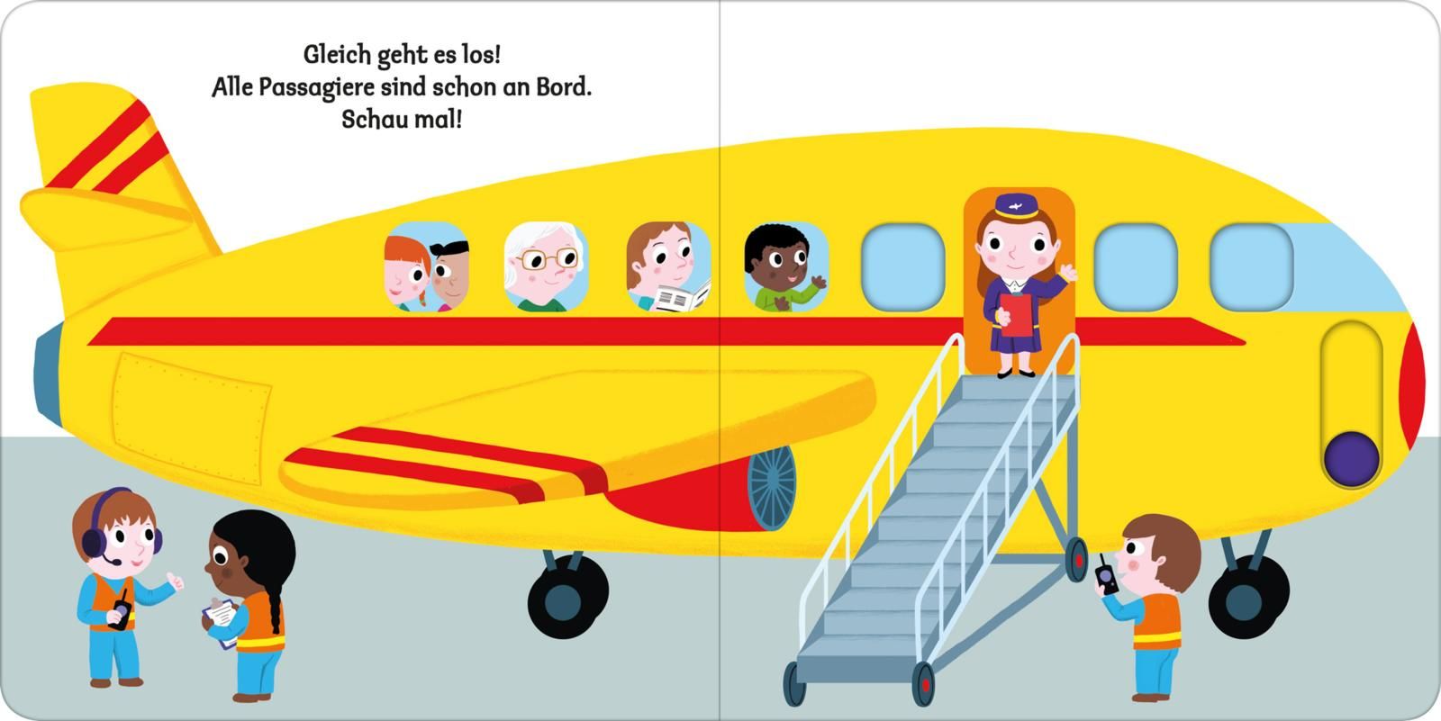Das Flugzeugbuch für die KleinstenEndlich fliegen wir in den Urlaub! Auf Bilder zeigen, zuhören, die Welt verstehen, so lernen schon die Kleinsten spielerisch und mit viel Spaß sprechen. Das schön illustrierte Pappbilderbuch nimmt dich auf fünf Doppelseiten mit auf eine Reise über den Wolken.Ein Mitmachbuch, das alle Sinne ansprichtBunte, leicht zu erkennende Bilder, eine klare Aufteilung und nicht zu viel auf einer Seite: Hier können schon Kinder ab einem Jahr in die Welt der Flugzeuge eintauchen. Die lustigen und stabilen Schiebeelemente im Buch fördern die Feinmotorik und das Verständnis. Einfach an dem großen Schieber ziehen und schon wird das Gepäck in das Flugzeug geladen. Sehen, zuhören, aktiv werden - so wird Sprechenlernen zum Kinderspiel, egal ob zu Hause, bei der Oma, im Kindergarten oder in der Krippe.- Spielerisch die Welt entdecken: In vielen kindgerechten Bildern vermittelt das Kinderbuch eine erste kleine Geschichte - Motorik trainieren: Lustige Schiebeelemente im Buch fördern die Fingerfertigkeit- Sprechen fördern: Die klar erkennbaren Abbildungen motivieren zum Sprechen- Zuwendung zeigen: Gemeinsam ein Buch anschauen und miteinander reden fördert die enge Bindung zwischen Eltern und Kind- Perfekt für kleine Kinderhände: Dicke Pappseiten und handliches Format- Geprüfte Qualität: Das Buch unterliegt strengen Sicherheitsanforderungen und regelmäßigen Qualitätskontrollen nach europäischer Spielzeugsicherheitsrichtlinie