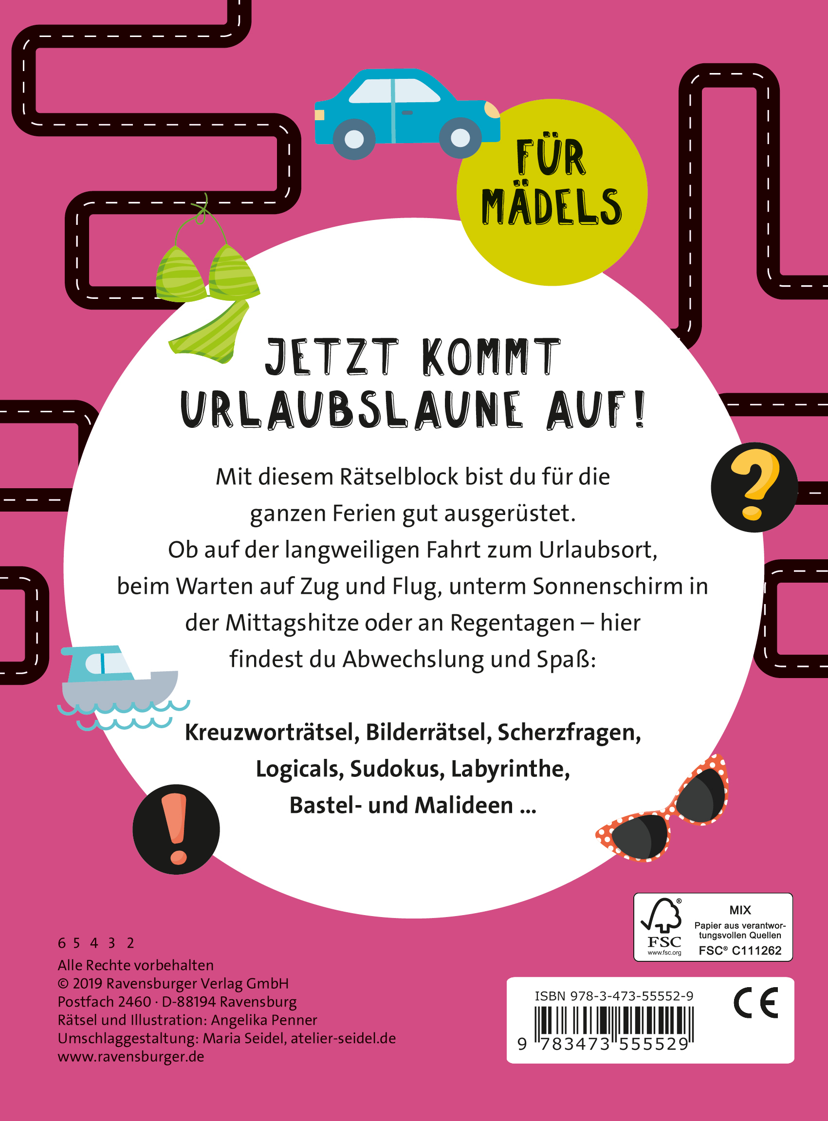 Mädchen machen anders Urlaub als Jungs. Mit diesem Rätselblock sind Mädchen ab 7 den ganzen Urlaub für jede langweilige Situation ausgerüstet. Ob auf der Fahrt oder dem Flug zum Urlaubsort, beim Warten auf Zug und Flug, unterm Sonnenschirm in der Mittagshitze, an Regentagen, 80 lustige Rätsel lassen die Zeit schnell vergehen und machen Spaß.