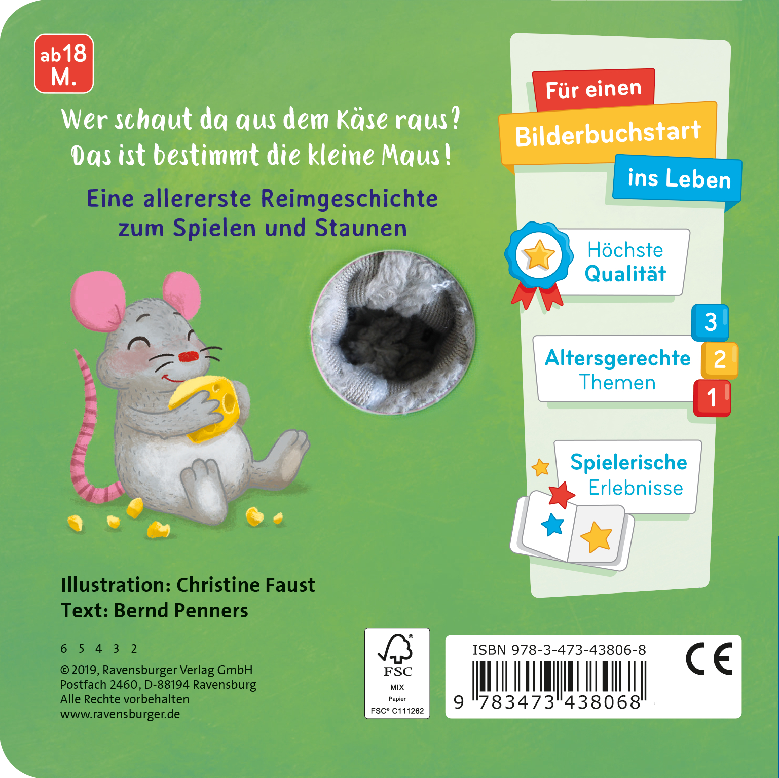 Eine allererste Geschichte mit Fingerpuppe zum Spielen und KuschelnKurze Reime erweitern spielerisch den Wortschatz und erzählen auf fünf Doppelseiten von einem aufregenden Mäuse-Tag:Nanu, wer ist denn hier zu Haus?Das ist bestimmt die kleine Maus!Die kleine Maus fährt übers Meer,ihr Bötchen schaukelt hin und her.Am Strand, da spielt die kleine Maus,sucht sich die schönsten Muscheln aus.Weil sie so großen Hunger hat,frisst sich die kleine Maus nun satt!"Jetzt bin ich müde", gähnt die Mausund ruht sich bis zum Morgen aus.In der letzten Seite des Buchs ist eine stabile Fingerpuppe befestigt. Durch Gucklöcher auf jeder Seite lässt sich der Kopf der kleinen Maus in jedem Bild bewegen.Probieren Sie es aus: Stecken Sie einen Finger hinein und erwecken Sie die Maus zum Leben!Das animiert Ihr Kind zum Tasten, Fühlen und Begreifen und fördert so spielerisch seine Feinmotorik.Auch praktisch: Die Fingerpuppe kann im Buch versteckt werden. So lässt sich das Buch trotz besonderer Ausstattung wunderbar ins Regal stellen und platzsparend aufräumen.