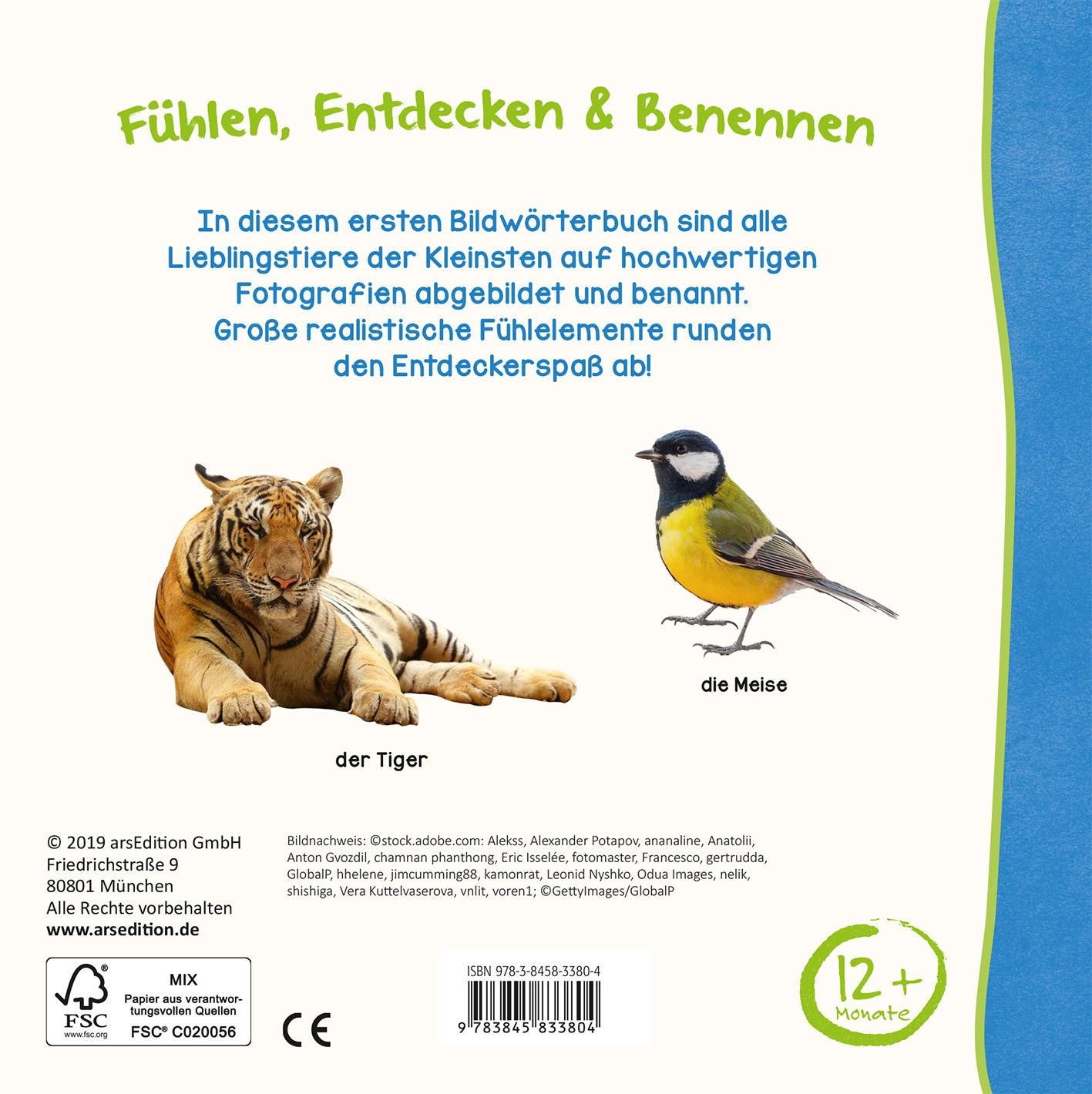 Kleinkinder möchten ihre Welt entdecken, Dinge einordnen und benennen. Dieses erste Wörterbuch hilft ihnen dabei. Realistische Fotos der ersten Lieblingstiere laden zum Entdecken, Wiedererkennen und Sprechenlernen ein. Auf jeder Doppelseite befindet sich ein großes Fühlelement, das den Entdeckerspaß abrundet. Motorik, Lautbildung und Sprache werden so optimal gefördert.