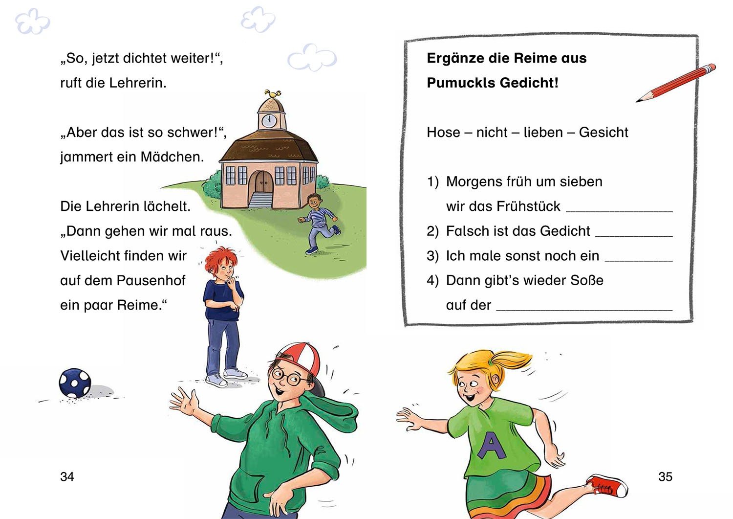 Pumuckl ist ein frecher Kobold, dem ständig neue Streiche einfallen. Mit ihm wird es nie langweilig!Pumuckl treibt fleißig Schabernack in der Schule und bringt beim Reimen alle durcheinander.Lesen lernen ist schwer? Nicht mit dieser spannenden Geschichte, die auch Leseanfänger ab Klassenstufe 1 leicht bewältigen können. Illustrationen und ein Leserätsel am Ende jedes Kapitels machen den Band abwechslungsreich, sorgen für Erfolgserlebnisse und erhöhen die Lesemotivation. So macht der Einstieg ins selbstständige Bücherlesen einfach Spaß.