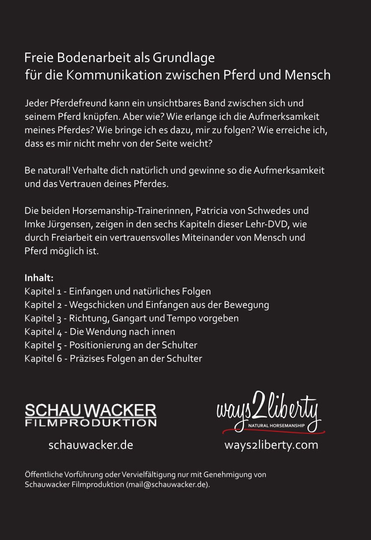 | Schlagworte | Bodenarbeit • Freiheitdressur • Imke Jürgensen • Liberty • Natural Horsemanship • Patricia von Schwedes • Pferde • Ralf Schauwacker • Reiten |
