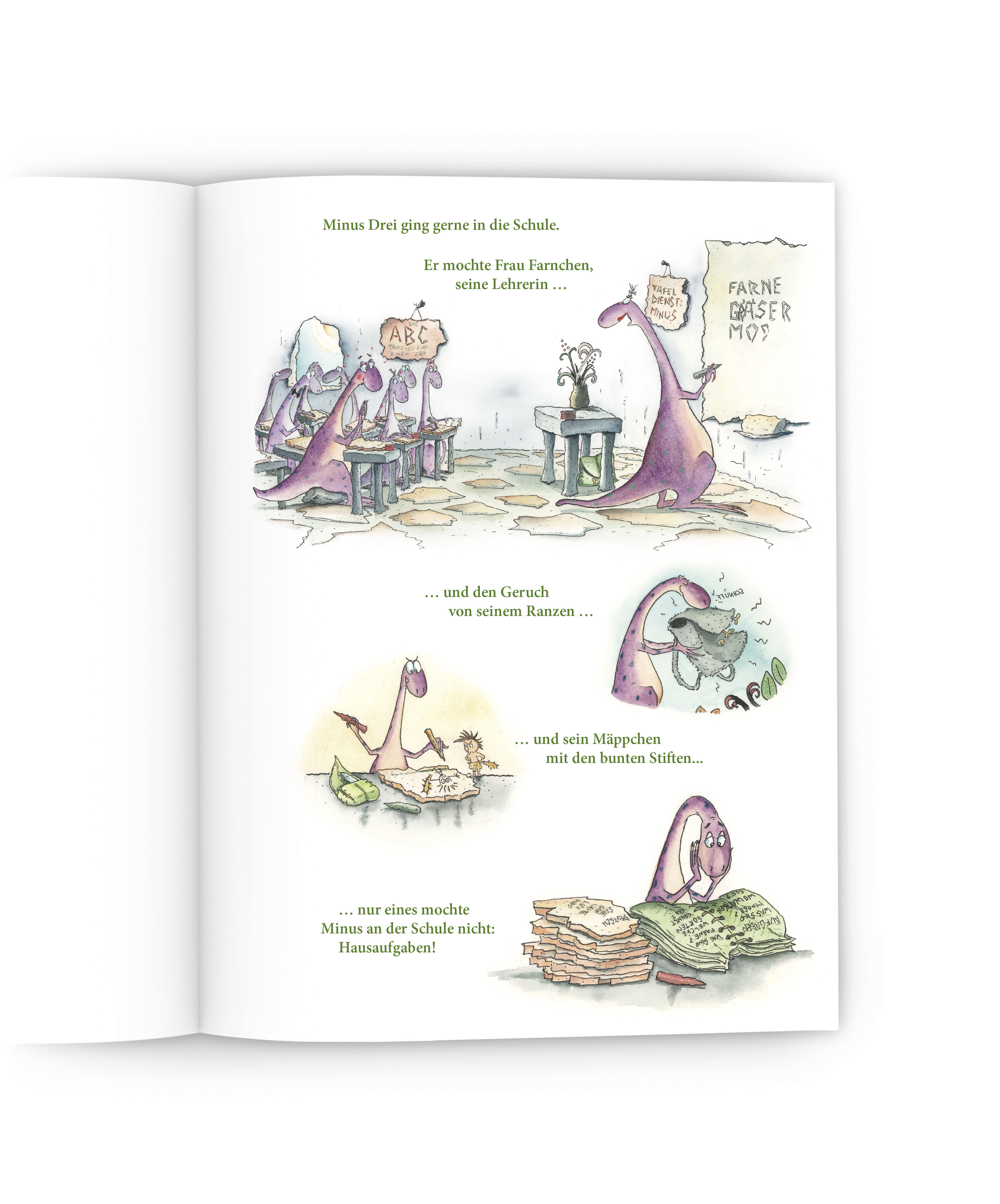 Dinosaurier-Junge Minus wünscht sich ein Haustier. Sogar mit einem Urfisch wäre er zufrieden! Doch seine Eltern sind strikt dagegen. Also entwickelt Minus einen Plan, wie er sich als weltbester Haustier-Kümmerer beweisen kann. Dabei geht so ziemlich alles schief, und Minus will schon aufgeben, als seine Eltern mit dem kleinen Urzeit-Mädchen Lucy nach Hause kommen ... Dieses liebenswert erzählte und großzügig illustrierte Vorlesebuch von Minus Drei und seiner Freundin Lucy enthält die Geschichten »Minus Drei wünscht sich ein Haustier«, »Minus Drei und die laute Lucy« und »Minus Drei und der Zahlensalat«.