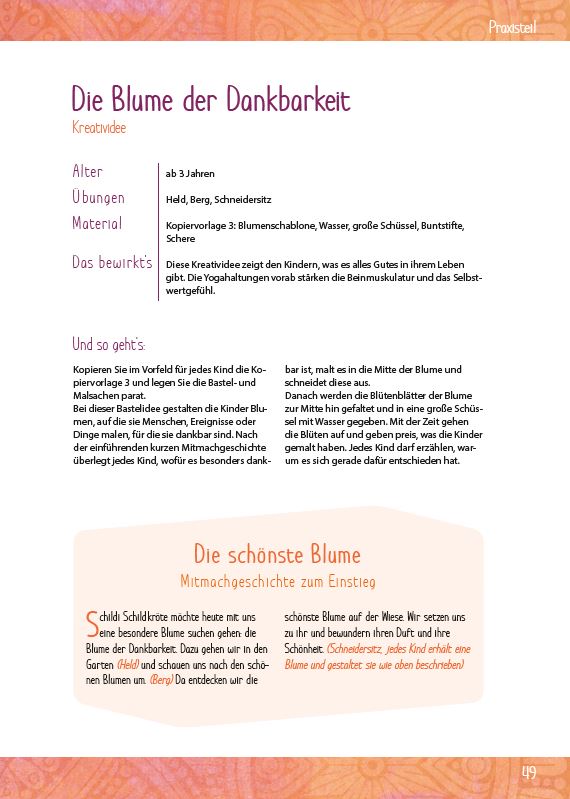 Sanfte Bewegungen für starke Kinder! Krieger, Held, Löwe & Co.: In Schildi Schildkröte macht stark finden Sie ausgewählte Haltungen und spezielle Übungsabfolgen aus Yoga und Kinesiologie, die den Kindern zeigen, wie stark sie sind. In mehr als 40 kindgerechten Mitmachgeschichten und Merkreimen werden die Übungen angewendet - so fördern Sie Resilienz spielerisch im Kita-Alltag. Außerdem dabei: Gruppenspiele, Vertrauensübungen und Fantasiereisen, die das Selbstbewusstsein stärken.Ob Profi oder Neuling - durch detaillierte Anleitungen und viele Praxisfotos fällt der Einstieg leicht!